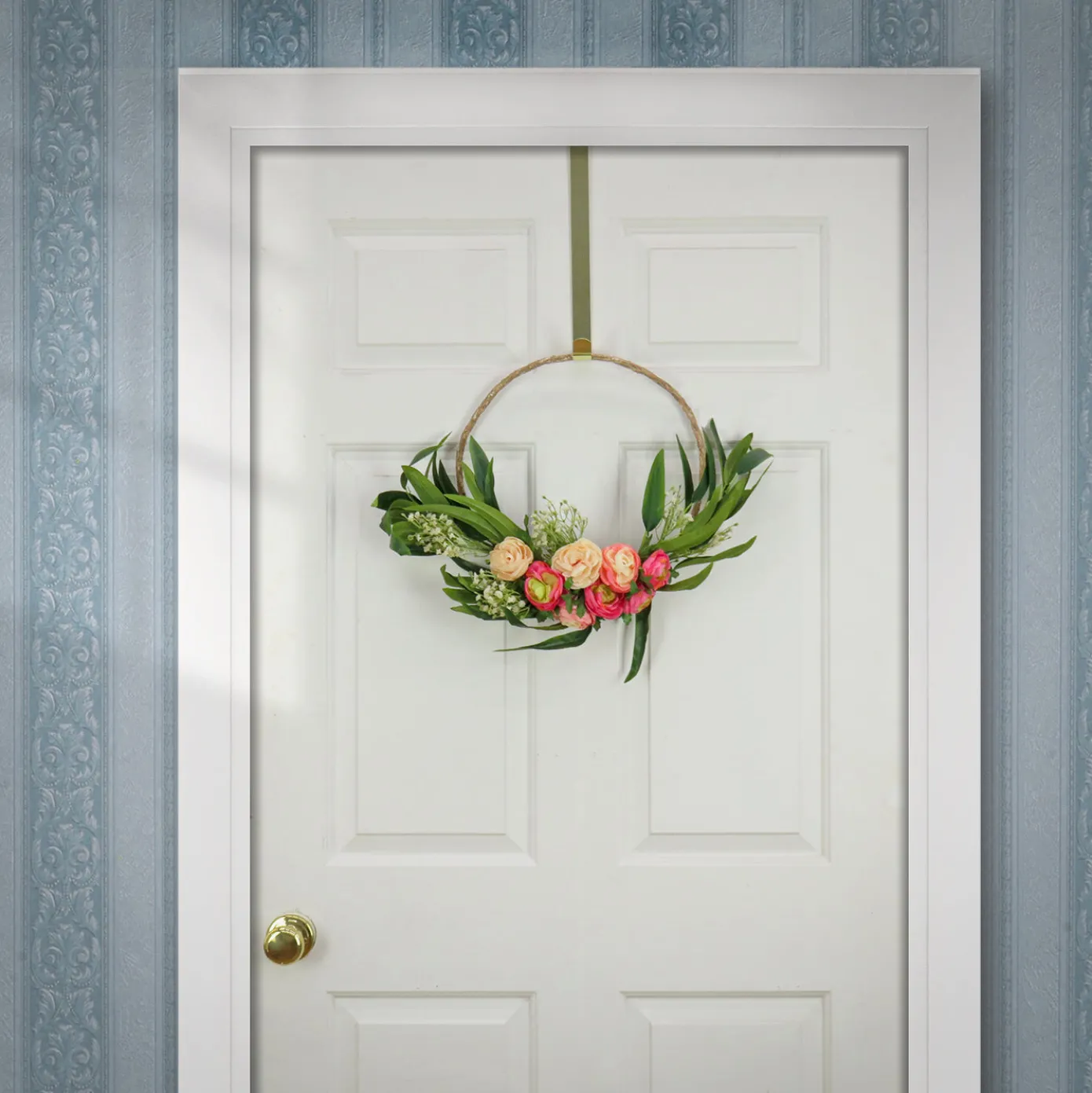 - LIFELIKE ARTIFICIAL FLORAL WREATH: This summer wreath features vibrant buttercup blooms, delicate baby’s breath, and eucalyptus leaves. This floral home décor beautifully represents the colors and textures of spring, creating a cheerful and welcoming atmosphere for any room or front door.