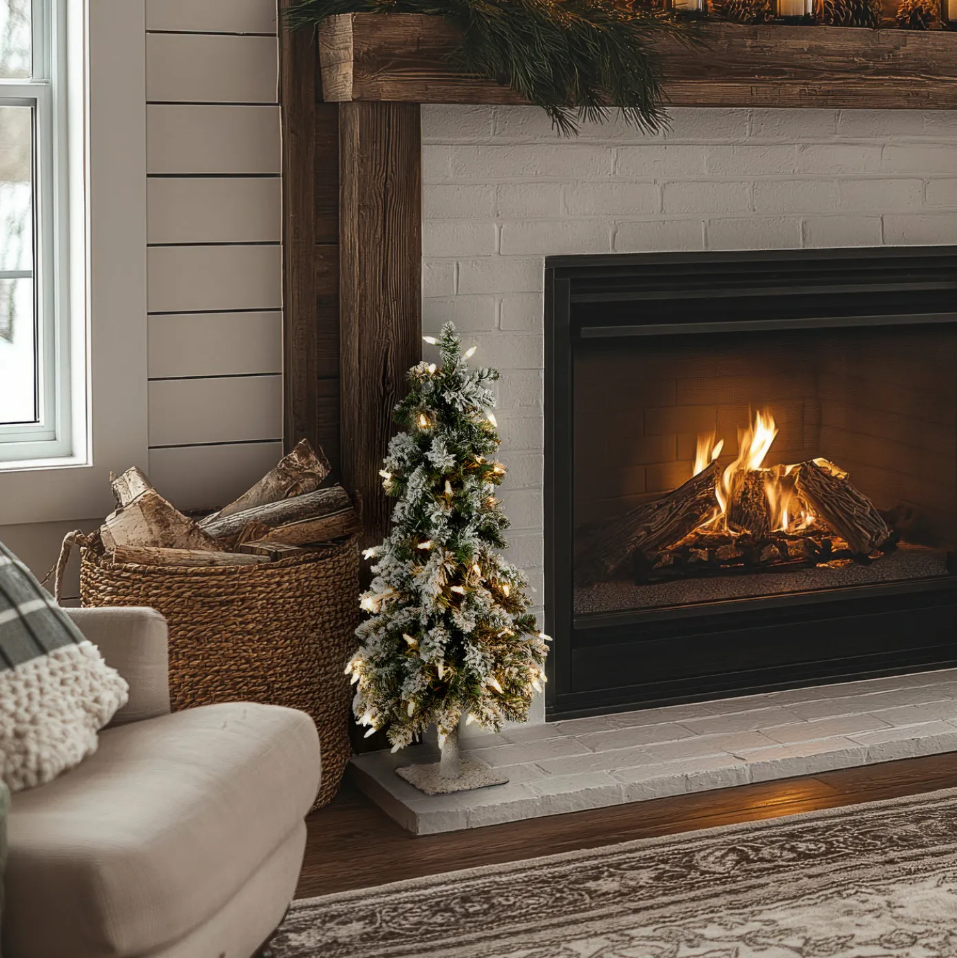 The Snowy Downswept Forestree is a slim profile tree with a downswept branch design and sturdy steel plate base. Branches, pole and base are sprinkled with flocking for the appearance of freshly fallen snow. This tree is pre-strung with 50 clear lights that remain lit even if a bulb burns out. Display this attractive evergreen in indoor or covered outdoor locations.