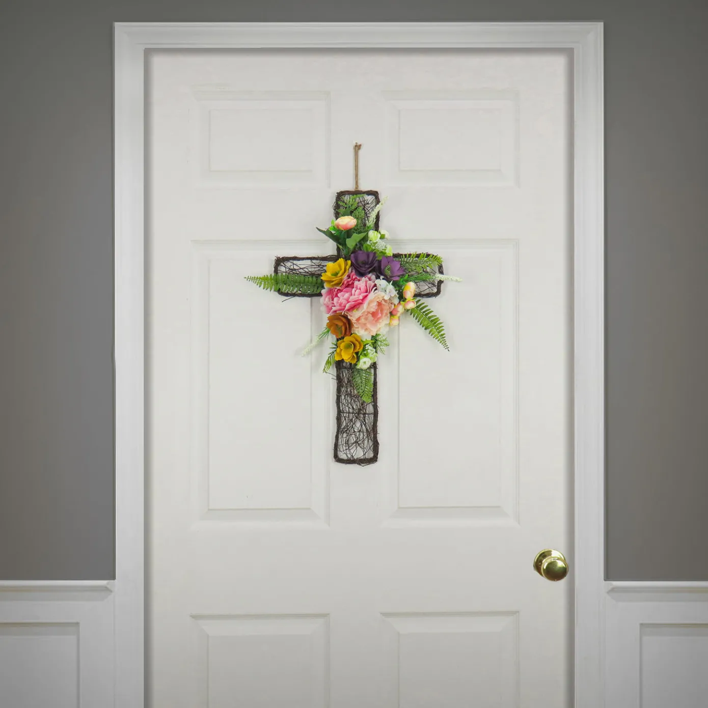 - Hang this floral cross decoration above a door, entryway or window to add a fun flair to any Easter-themed decorative arrangement