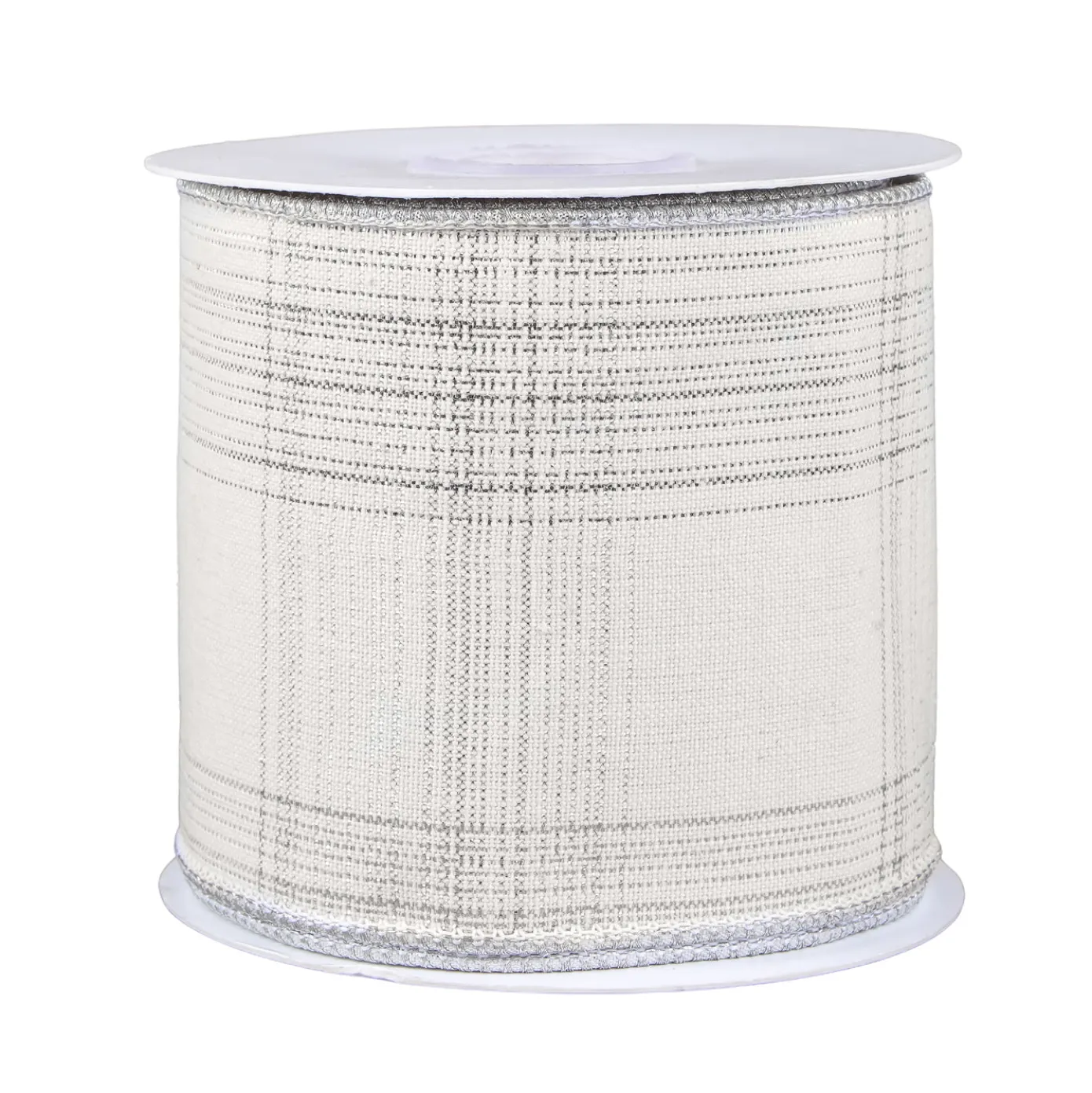 The HGTV Home Collection by National Tree Company 3 inch Double Fused White with Silver Plaid Ribbon with Silver Piping is a stylish and modern ribbon that beautifully blends simplicity with elegance. The crisp white base is adorned with a chic silver plaid pattern, giving it a fresh and sophisticated look that’s perfect for various occasions, especially during the winter and holiday seasons. The silver piping along the edges adds a touch of shimmer and enhances the ribbon’s structure, making it easy to create polished bows and decorative accents. The double fused edges ensure durability, preventing fraying and allowing for clean, finished looks.