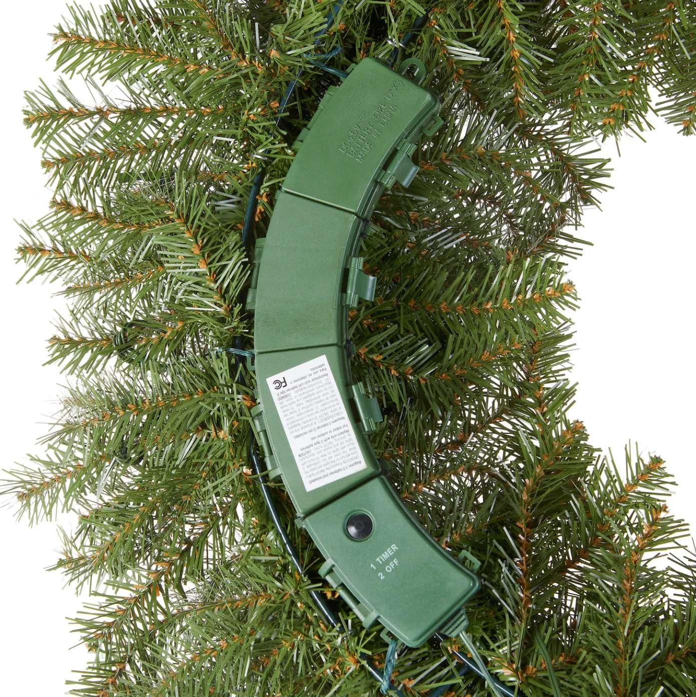 This Norwood Fir wreath is pre-strung with 100 battery operated warm white LED lights that are energy-efficient, long lasting and cool to the touch. A convenient 6 hours ON/18 hours OFF timer controls light operation. This wreath can be displayed on doors, walls and windows in indoor or outdoor locations.