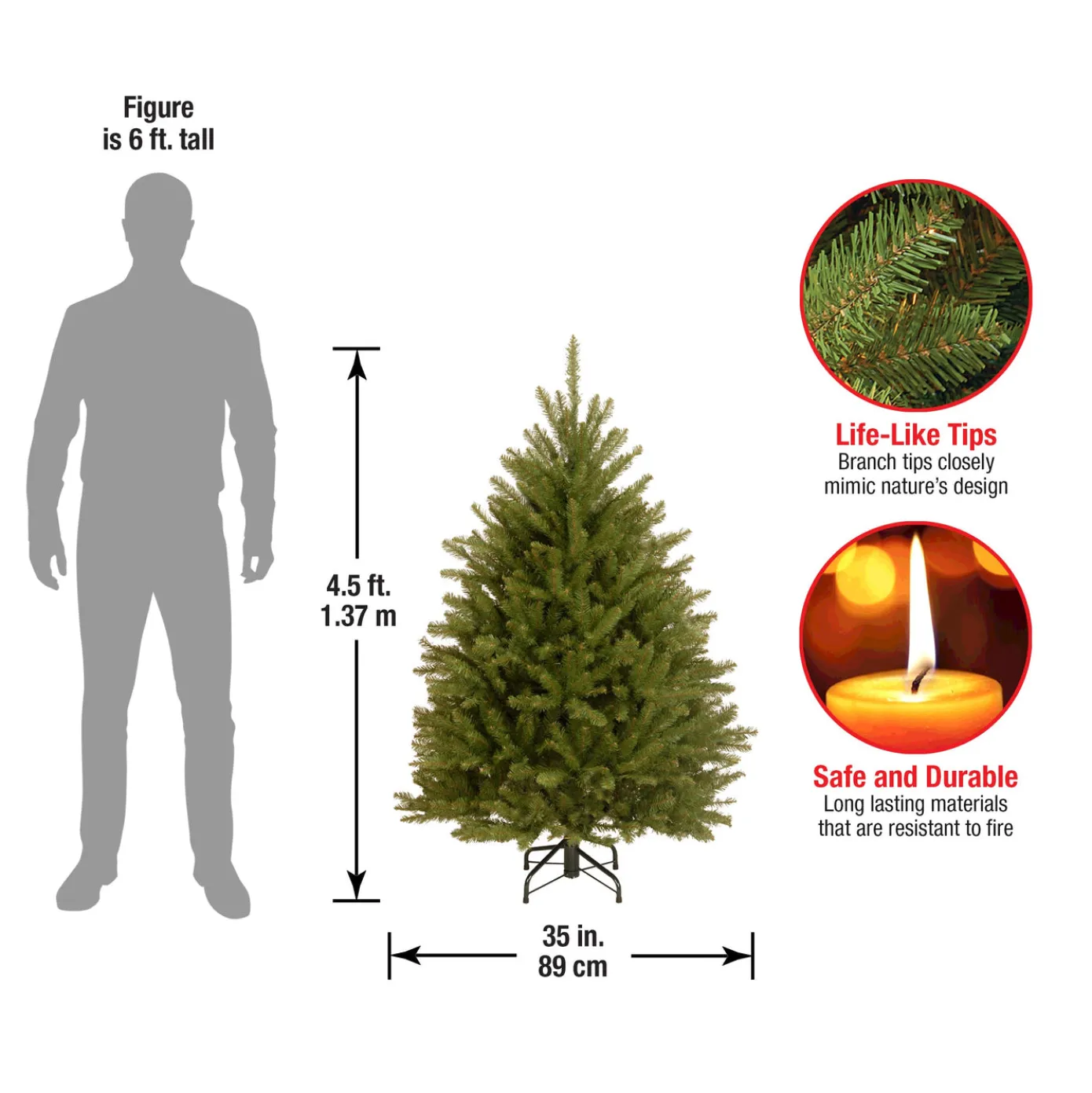 The Dunhill Fir is a full body tree featuring a generous number of branch tips for holding holiday trimmings. This tree features hinged branch construction for ease of assembly. Sturdy folding metal tree stand is included.