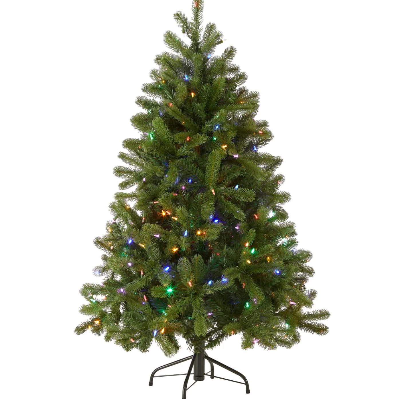 This Downswept Douglas tree features Feel Real branch tip technology, creating a tree with remarkable realism. These crush-resistant branch tips are molded from real tree branches for an authentic living tree appearance. This tree is pre-strung with 300 Dual Colorlights that change from warm white to multicolor with the touch of a button. Included is a foot pedal switch to control 10 different light colors and actions. This tree features hinged branch construction for ease of assembly. Sturdy metal tree stand is included.