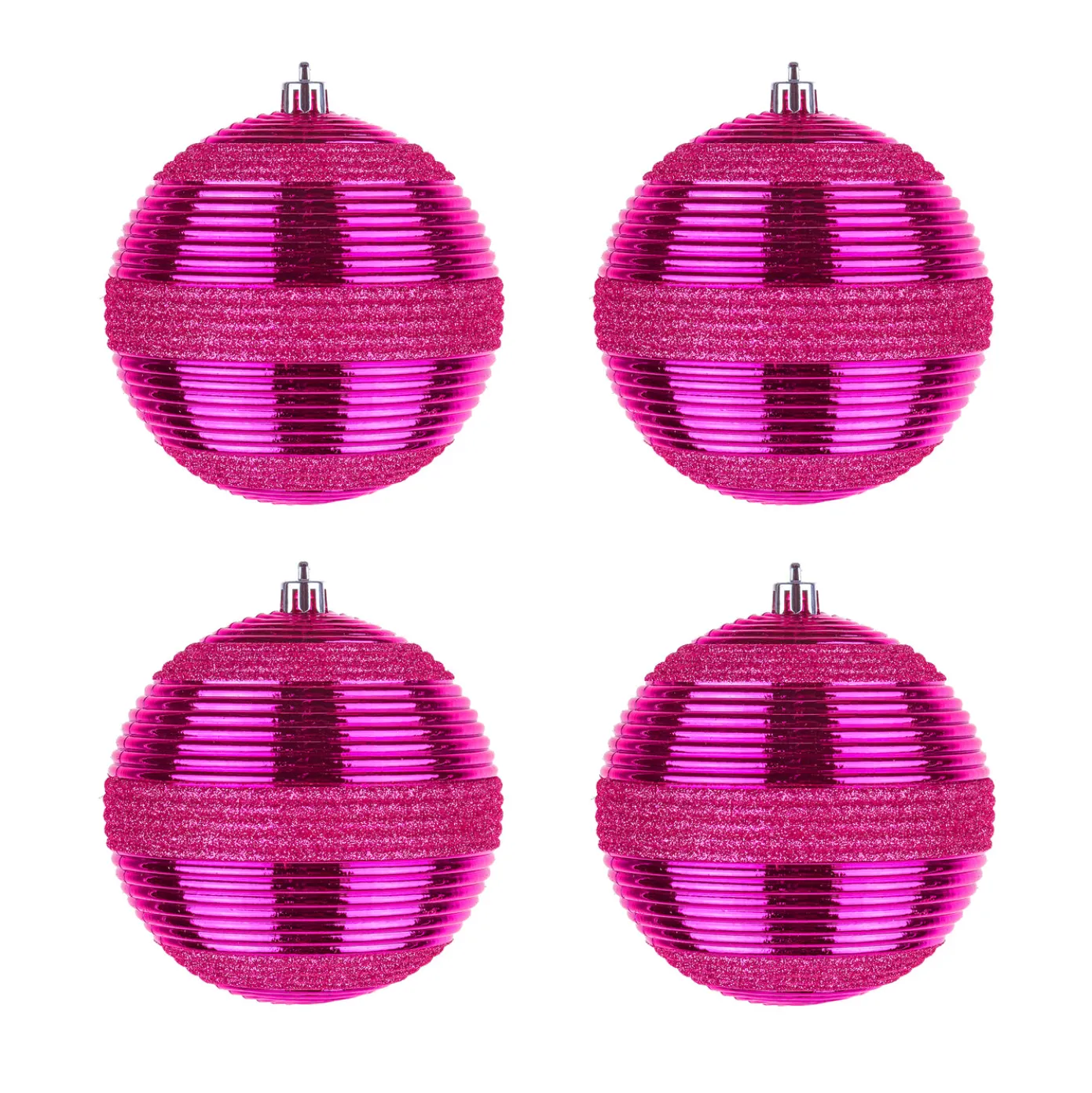 The shatterproof swirling pink ornaments with glitter in a set of four sound enchanting and perfect for adding a whimsical touch to your holiday decor! The glitter will add a festive sparkle, making them eye-catching on your tree or in other displays. You can use these pink ornaments to create a playful color scheme, perhaps pairing them with white, gold, or silver for a chic look. They would also work beautifully in a pastel-themed holiday display. Consider using them in decorative bowls, on garlands, or mixed in with other ornaments for a fun and dynamic arrangement. All pieces are constructed of lightweight and shatterproof polystyrene material.
