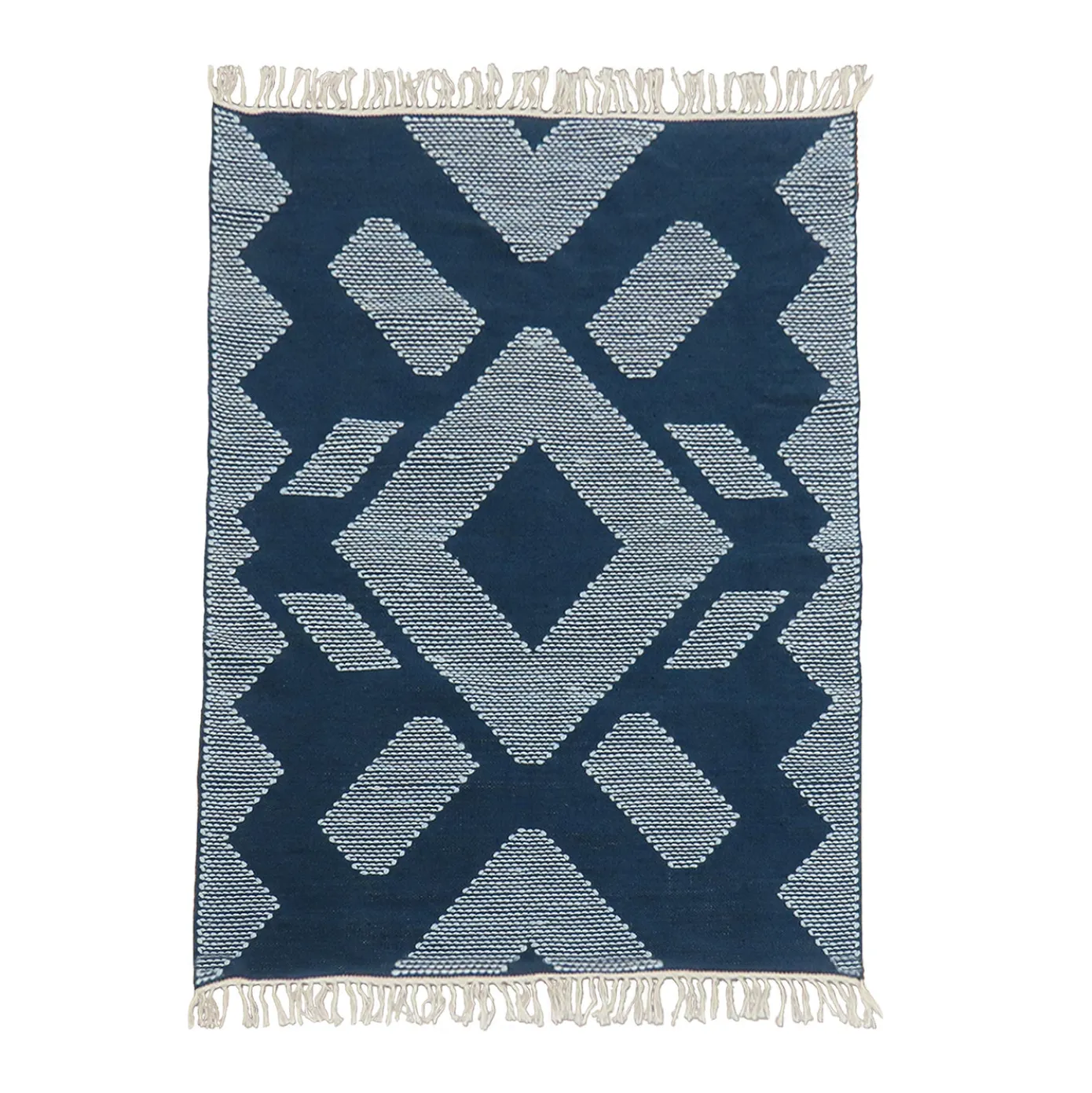 This attractive indoor/outdoor area rug is constructed of 100% polyester that is stain and fade resistant and designed to endure outdoor environments. Handwoven in a rich indigo blue and featuring a braided geometric pattern, this floor covering will provide a relaxed texture while at the same time protecting the floor beneath. Durable and suitable for high-traffic areas, this rug will easily dress up interior or exterior spaces, perfect for porch, patio, family room or foyer.