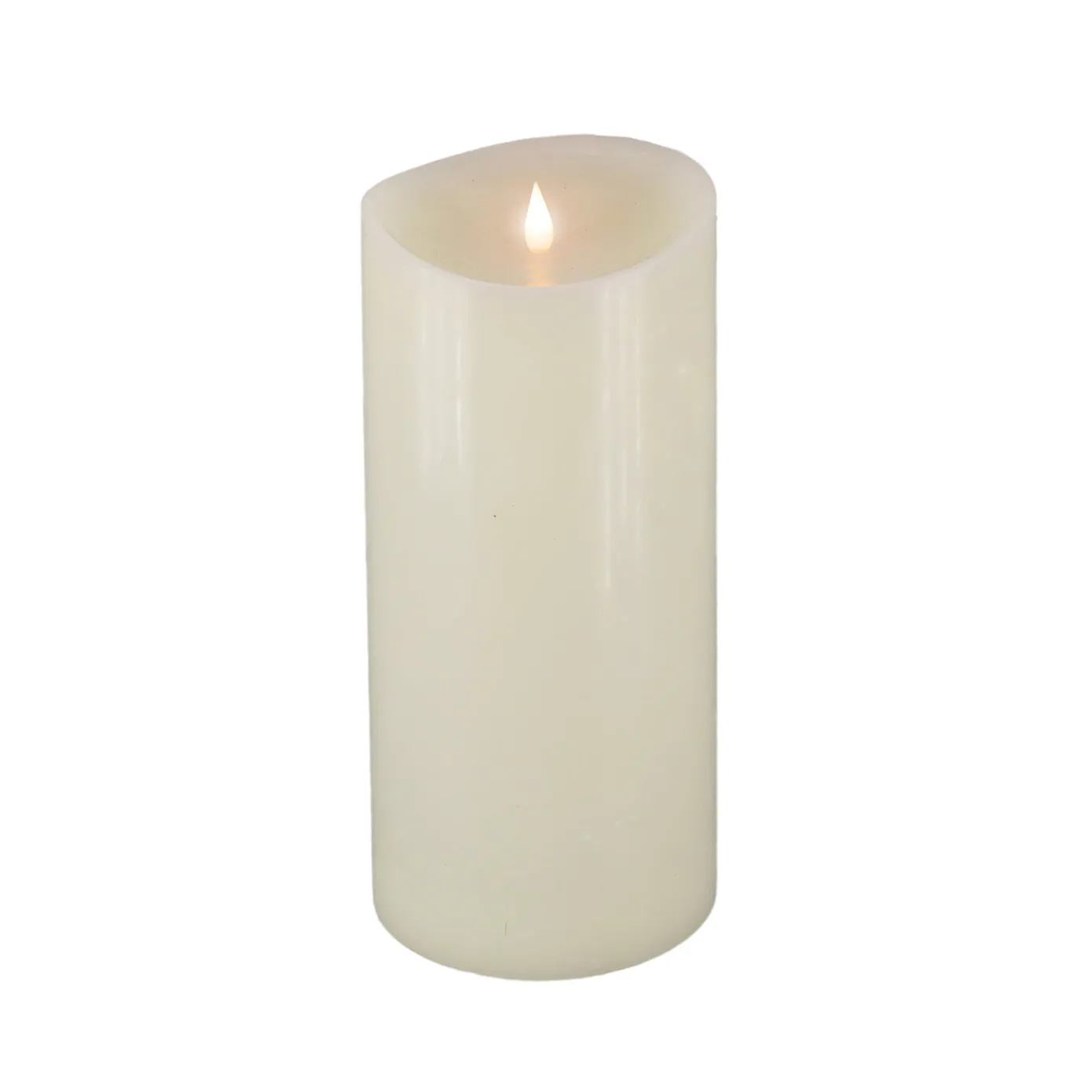 Battery operated with remote controlled functions, this flameless candle produces a realistic, soft, and safe candle glow. The smooth, ivory color exterior surface is crafted with real wax and features an uneven ‘melted’ top appearance. A handheld remote control operates the lifelike candle flame with functions that include brightness, flicker speed, and timer settings. Uses two C size batteries (not included).