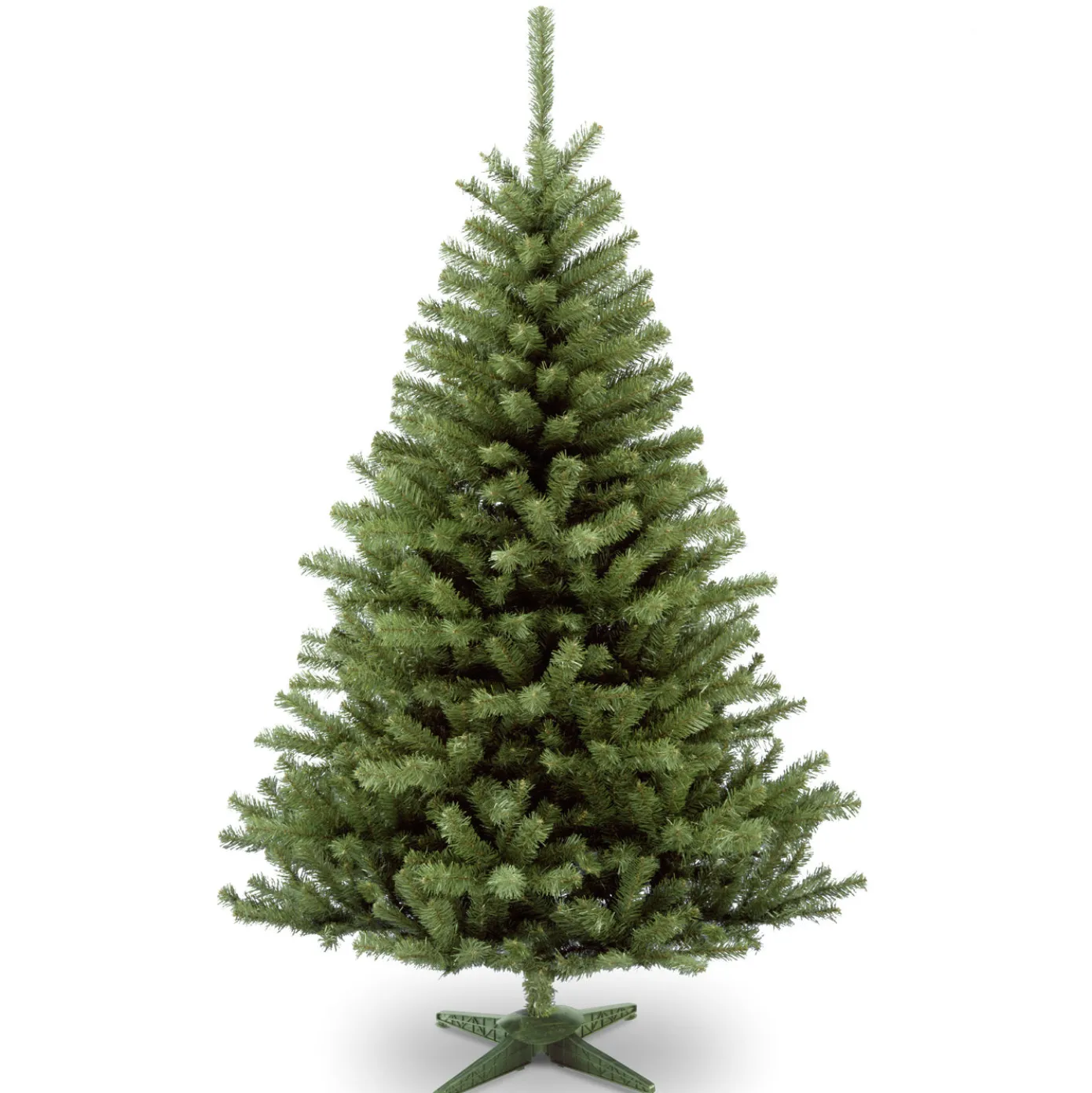 The Kincaid Spruce presents a classic cone shape evergreen tree with wide diameter branch tips for added fullness. This tree features wrapped branch construction for ease of assembly. Sturdy folding metal tree stand is included.