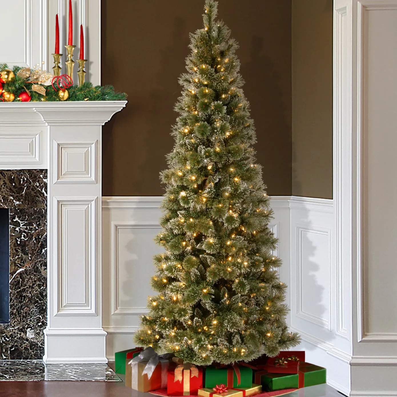 Slim Christmas trees are popular for their slender, space-saving design, making them ideal for smaller spaces or for adding a festive touch without taking up too much room.