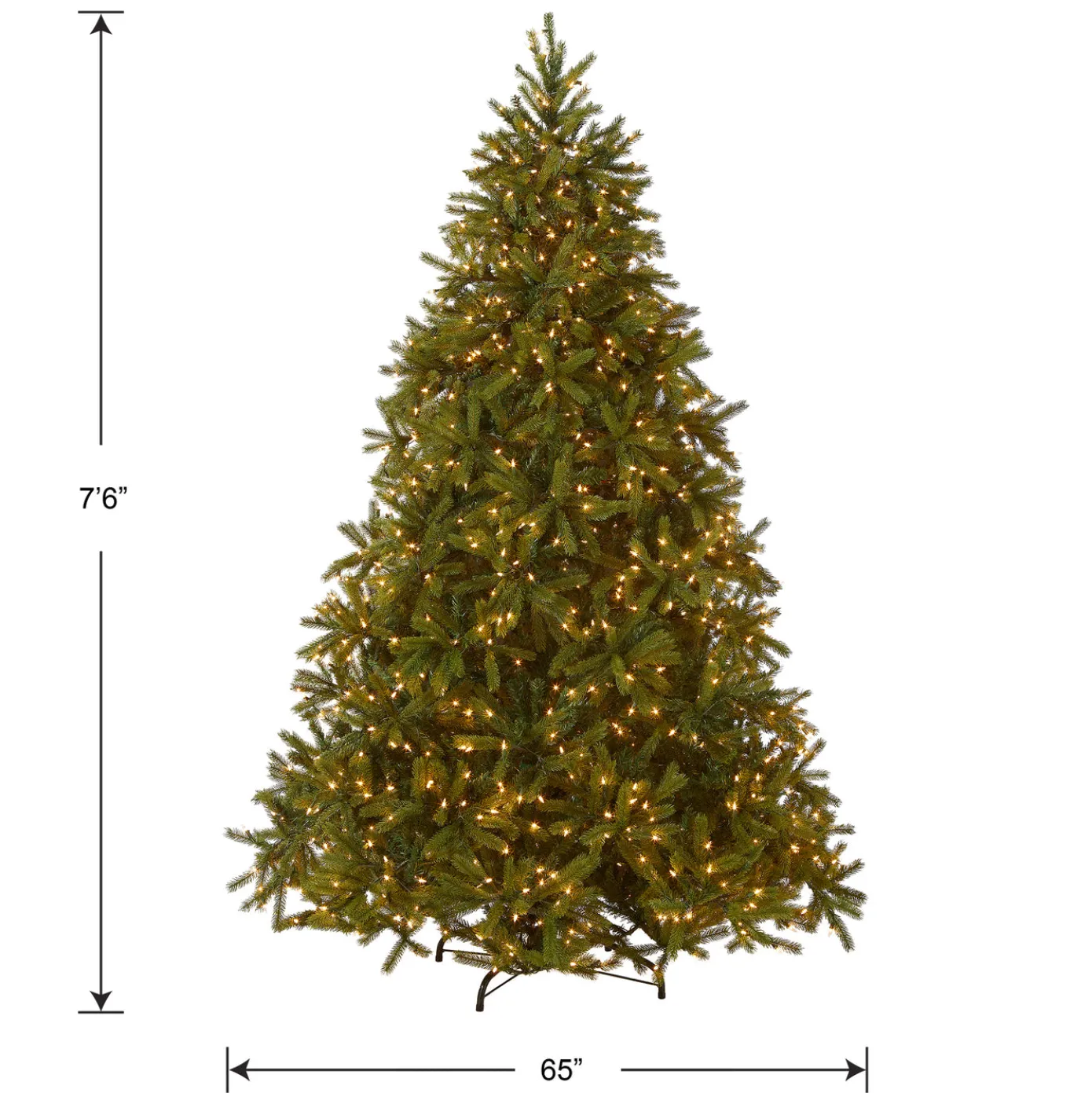 This Jersey Fraser Fir tree features Feel Real branch tip technology, creating a tree with remarkable realism. These crush-resistant branch tips are molded from real tree branches for an authentic living tree appearance. This full-bodied tree is pre-strung with 1250 clear lights that remain lit even if a bulb burns out. This tree features hinged branch construction for ease of assembly. Sturdy metal tree stand is included.
