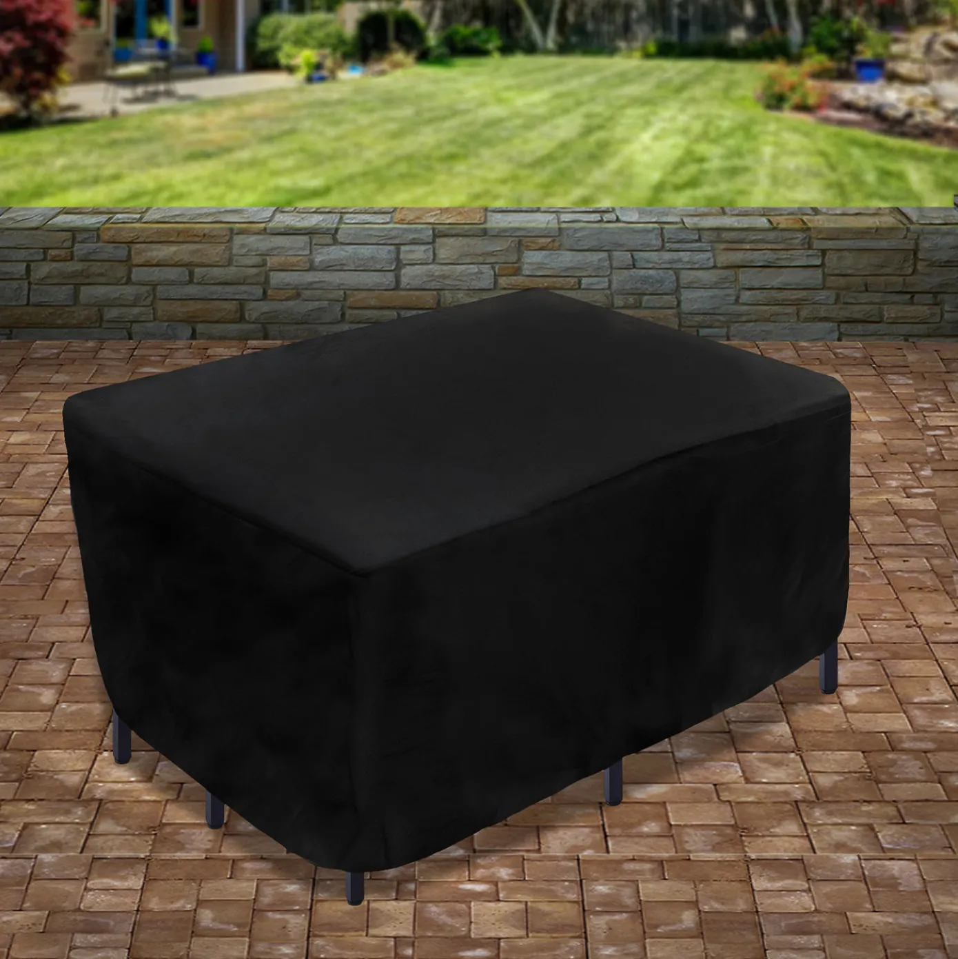 - Protect your outdoor furniture from harsh weather with our patio furniture covers. This black polyester cover is waterproof for added protection. Designed with rope and metal buckles for additional security and provides a more customized fit. Give your patio furniture the ultimate protection from dust and dirt to rain and snow.