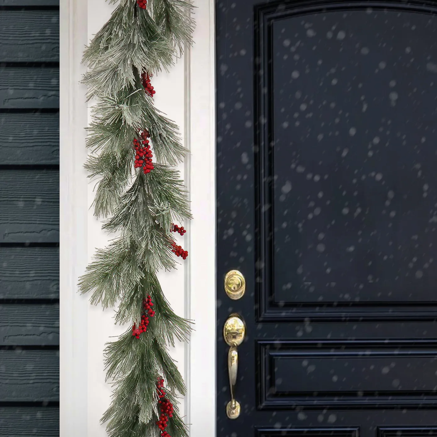 Bring the holiday cheer to your home with this Snowy Pine Berry Plastic Garland. Trimmed with red berry clusters, along a flexible vine base, this wintry garland will add a lovely festive touch to your entryway, fireplace mantel, or stairway. For indoor or outdoor display.
