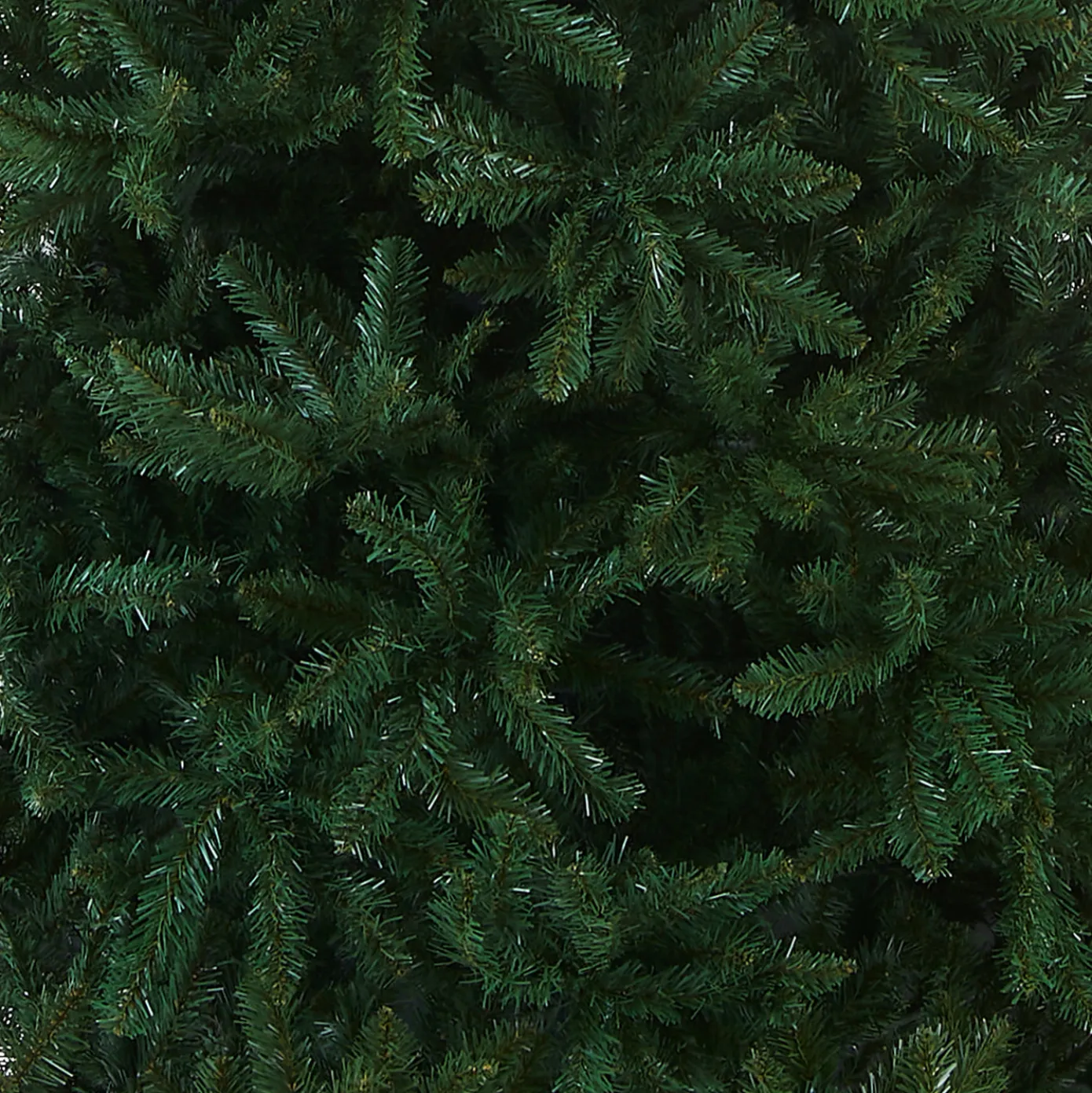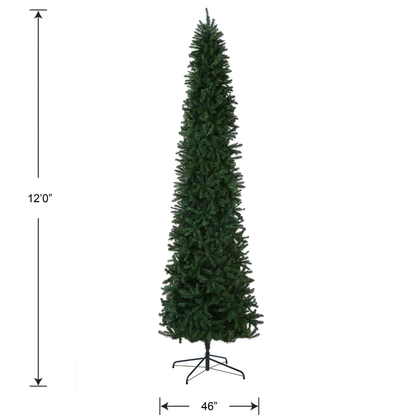 Though tall in height, this Kingswood Fir tree has a pencil thin profile that may make it better for display in corners or areas with limited floor space, compared to typical full width trees of similar height. This tree features hinged branch construction for ease of assembly. Sturdy metal tree stand is included.