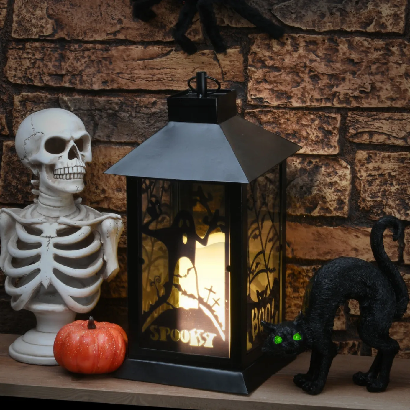 - Designed with high-impact metal and a matte finish, this 16 inch lantern decoration is a perfect complement to any Halloween-themed arrangement.