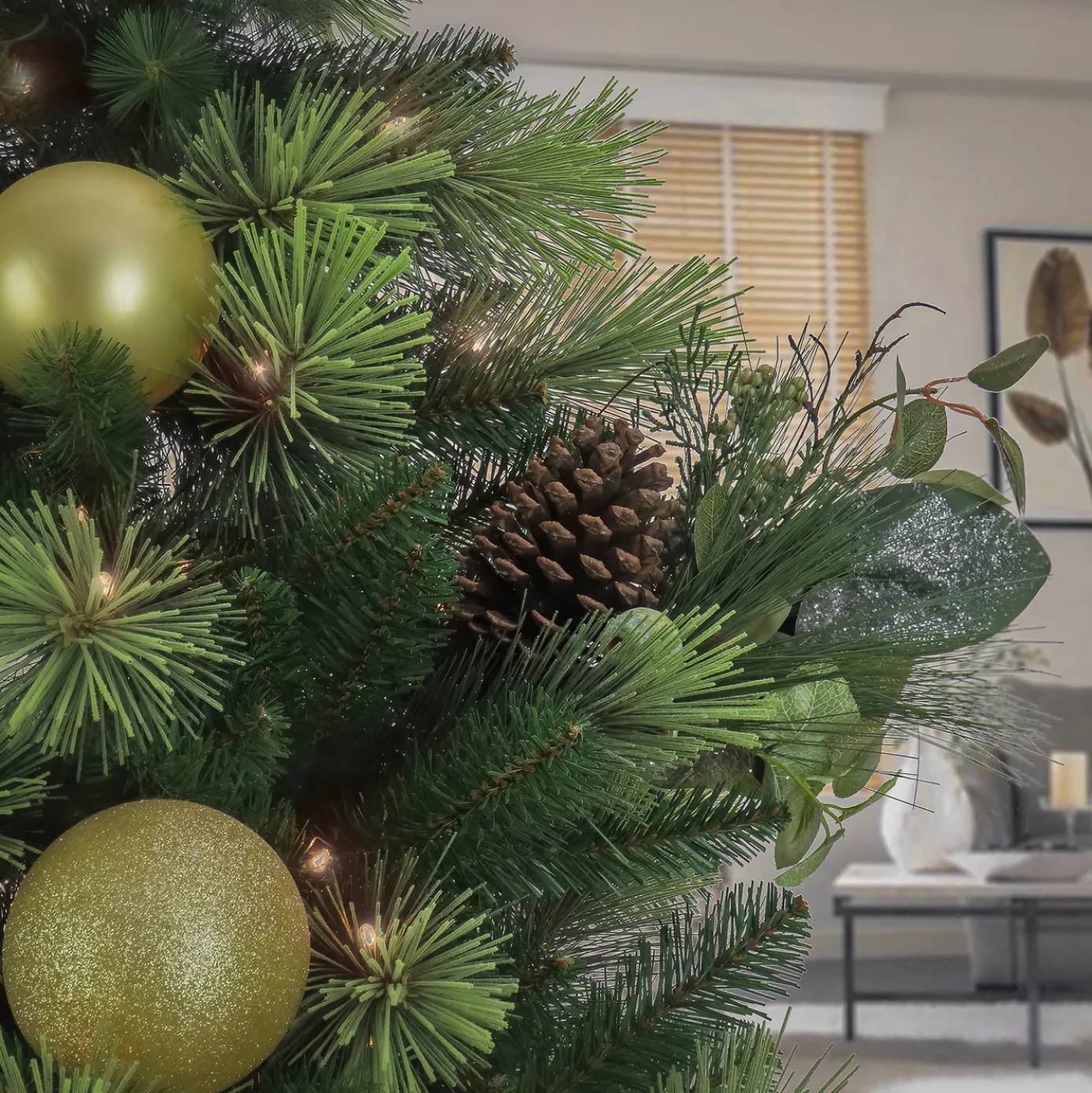 This long stem 19 inch plastic pick features pine, berries, and cones. Add this pick to your holiday decorations for custom trimmings and to take your Christmas decorating to the next level. Indoor use only.