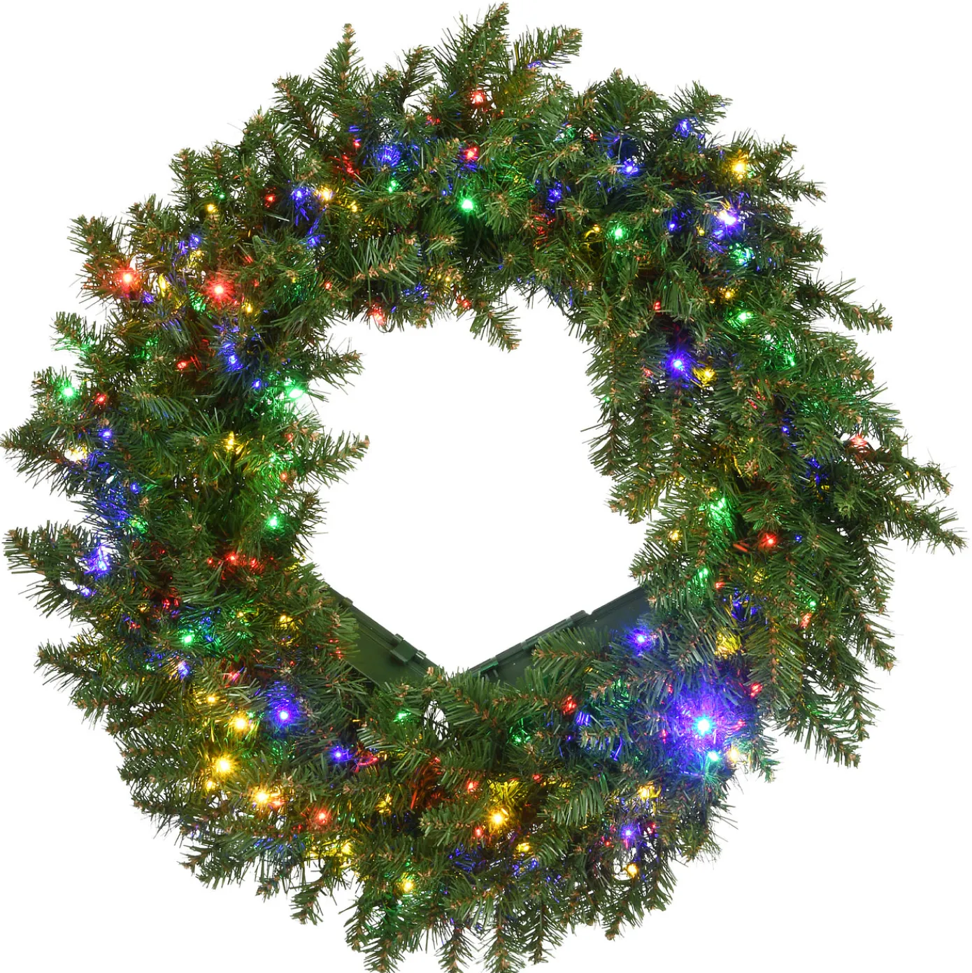 TheKingswood Fir wreath is pre-lit with 250 battery operated Dual Color LED Infinity Lights featuring 10 functions that controls the light colors with a integrated 6 hours ON/18 hours OFF timer. The Infinity Lights set features an extra small bulb combined with an increase of 2 to 3 times the volume of bulbs to produce a distinctly elegant result. Display this unique decoration on a door, wall or window in indoor or covered outdoor locations.