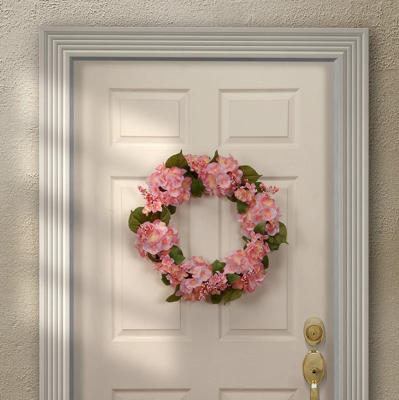 - This spectacularly spring decoration is the perfect complement to any decorative arrangement, featuring large, pink hydrangea blooms, pink and red berry clusters and a swirl of leafy greens.