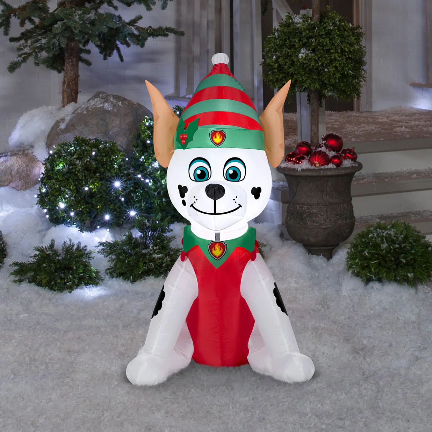 This 3.5 foot inflatable Marshall from Paw Patrol is a great addition for fans of the show! This fun decoration will surely delight kids and bring a playful touch to your holiday decor. The warm white LED light will help it shine brightly, especially in the evening. You can place it in your yard, on your porch, or even inside if you want to create a festive corner. It would pair well with other themed decorations or toys, making a fun display for little ones. It self inflates in seconds and includes ground stakes and tethers for easy outdoor setup.