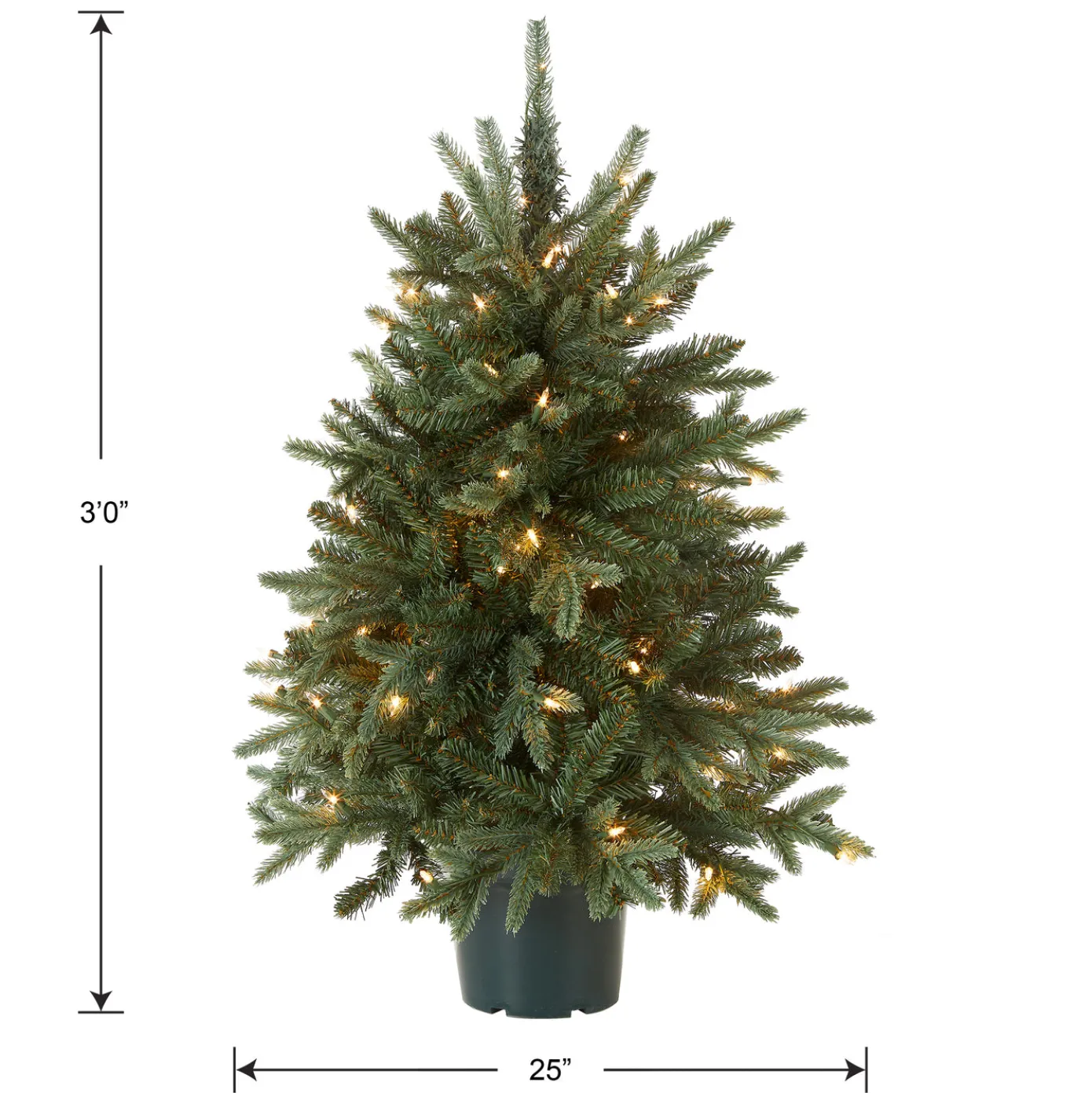 This Everyday Collention tree is seated in a green growers pot and is pre-strung with 100 clear lights that remain lit even if a bulb burns out. Display in indoor or covered outdoor locations.