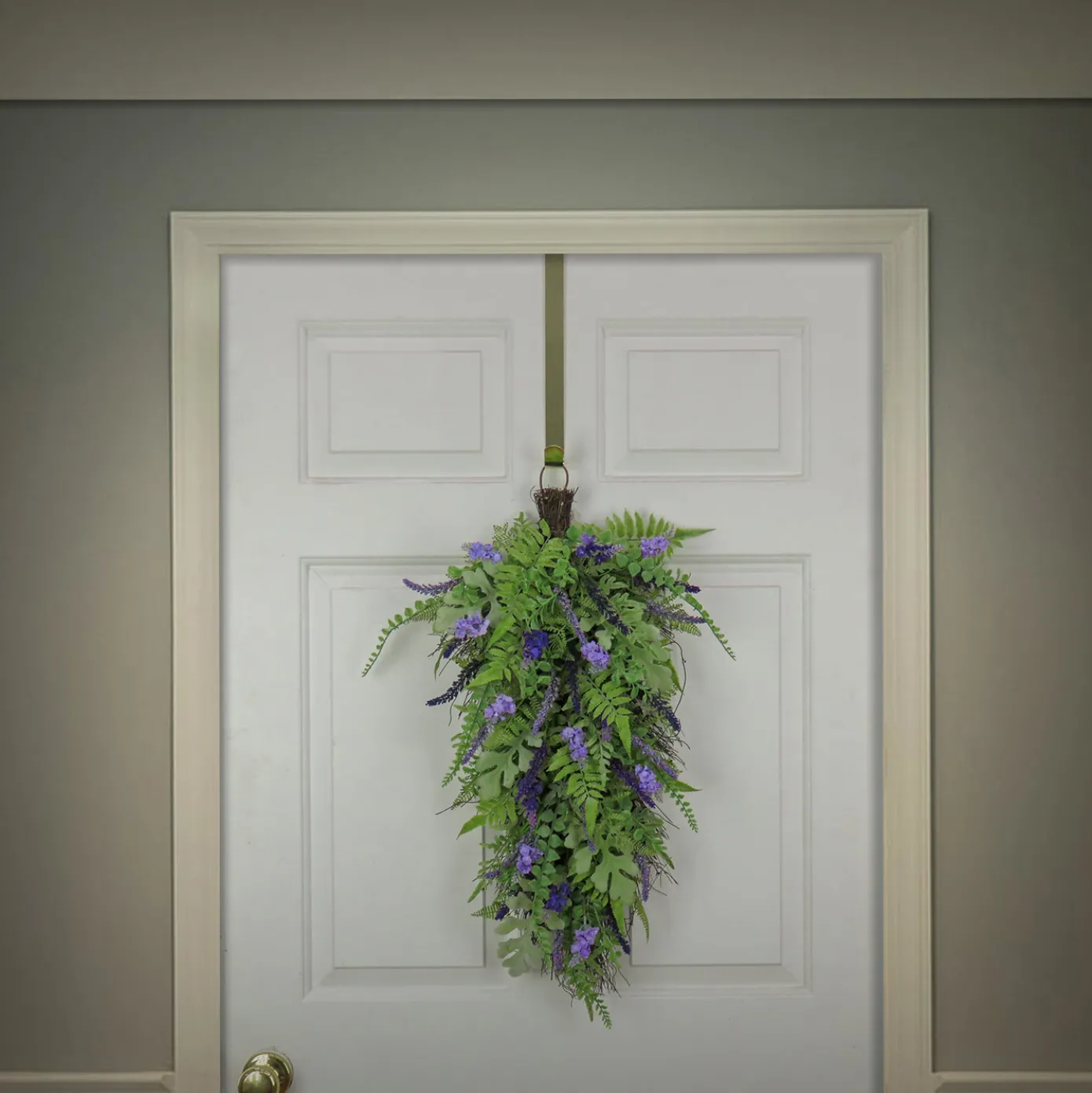 - This artificial hanging teardrop is decorated with an assortment of astilbe flower blooms, fern branches and features a swirl of long-stemmed leafy greens to create an additional natural appeal