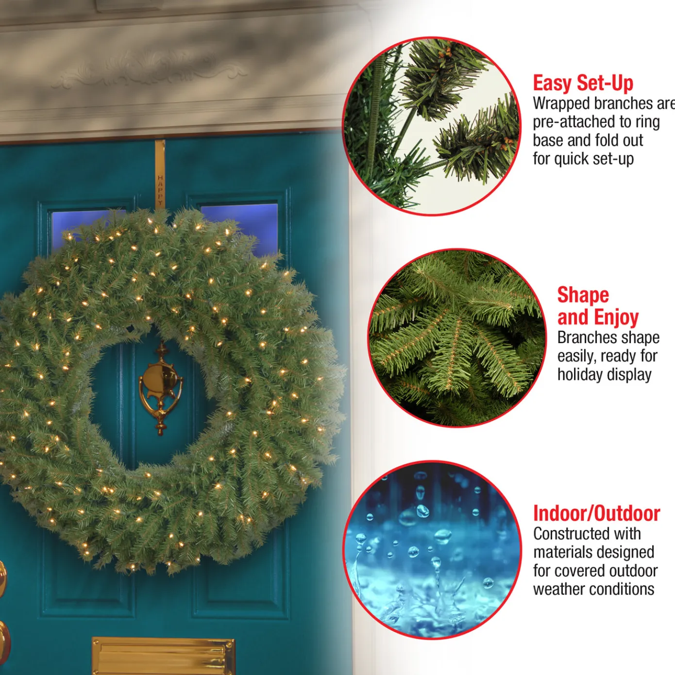 The Norwood Fir is a thick, full wreath featuring many more branch tips than other wreath styles of similar size. It is pre-strung with 100 clear lights that remain lit even if a bulb burns out. This wreath can be displayed on doors, walls and windows in indoor or outdoor locations.