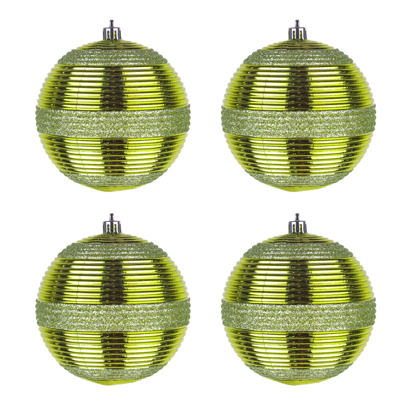 The shatterproof swirling lime green ornaments with glitter in a set of four sound vibrant and perfect for adding a pop of color to your holiday decor! The glitter finish will catch the light beautifully, creating a festive sparkle on your tree or display. You can use these ornaments to complement a green and gold color scheme, mix them with other bright colors, or even pair them with more neutral tones for a striking contrast. They can also be hung on garlands or placed in decorative bowls for an added festive touch. All pieces are constructed of lightweight and shatterproof polystyrene material.