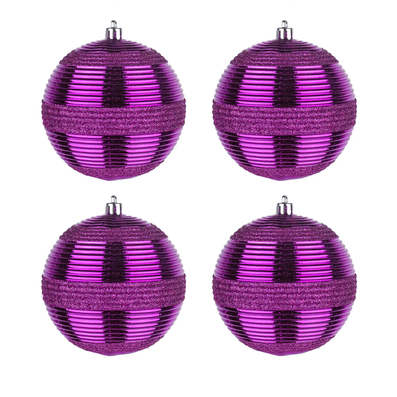 The shatterproof swirling purple ornaments with glitter in a set of four are a fantastic choice for adding a rich, regal touch to your holiday decor! The glitter will give them a lovely sparkle, making them stand out beautifully on your tree or in festive displays. You can pair these purple ornaments with gold, silver, or white for an elegant look, or mix them with other vibrant colors for a more playful arrangement. They would also look stunning in decorative bowls, on garlands, or incorporated into wreaths. All pieces are constructed of lightweight and shatterproof polystyrene material.