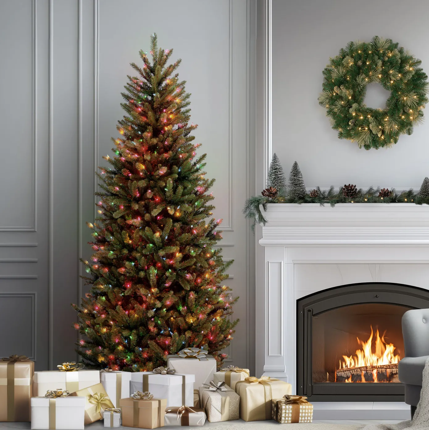 Slim Christmas trees are popular for their slender, space-saving design, making them ideal for smaller spaces or for adding a festive touch without taking up too much room.