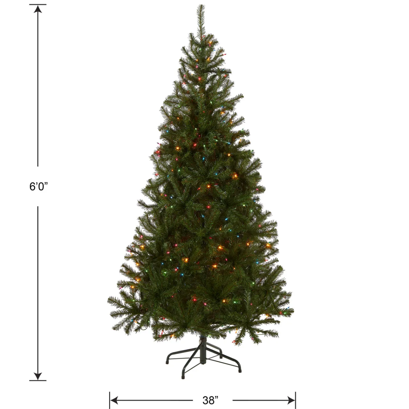 The Aspen Spruce is a full body tree featuring a generous number of branch tips for holding holiday trimmings. It is pre-strung with 300 multicolor lights that remain lit even if a bulb burns out. This tree features hinged branches for ease of assembly. Sturdy folding metal tree stand is included. The