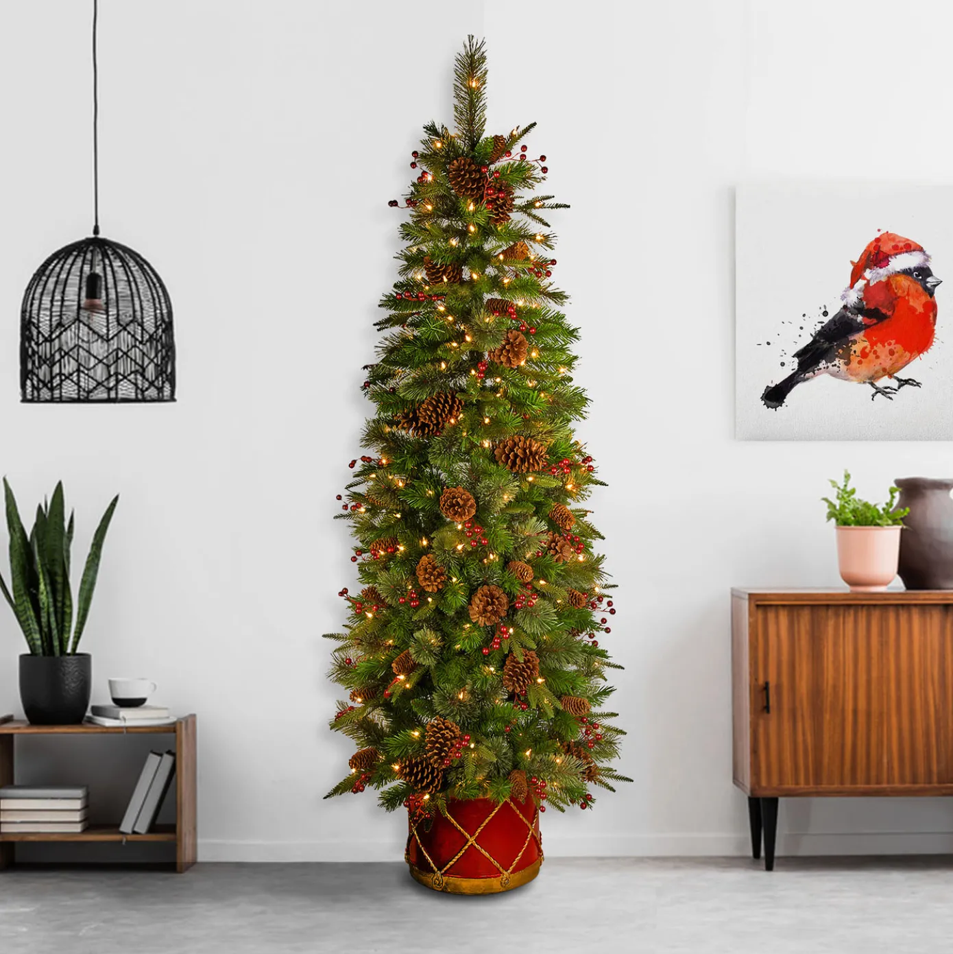 Slim Christmas trees are popular for their slender, space-saving design, making them ideal for smaller spaces or for adding a festive touch without taking up too much room.