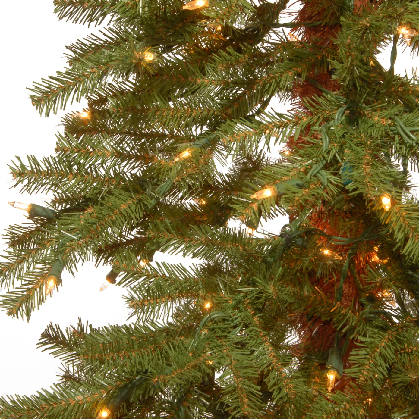 This Hickory Cedar gives the appearance of a just cut forest tree. It features a downswept branch design, wrapped center pole and steel plate base. This tree is pre-strung with 200 clear lights that remain lit even if a bulb burns out. For indoor or covered outdoor display on floor or tabletop.
