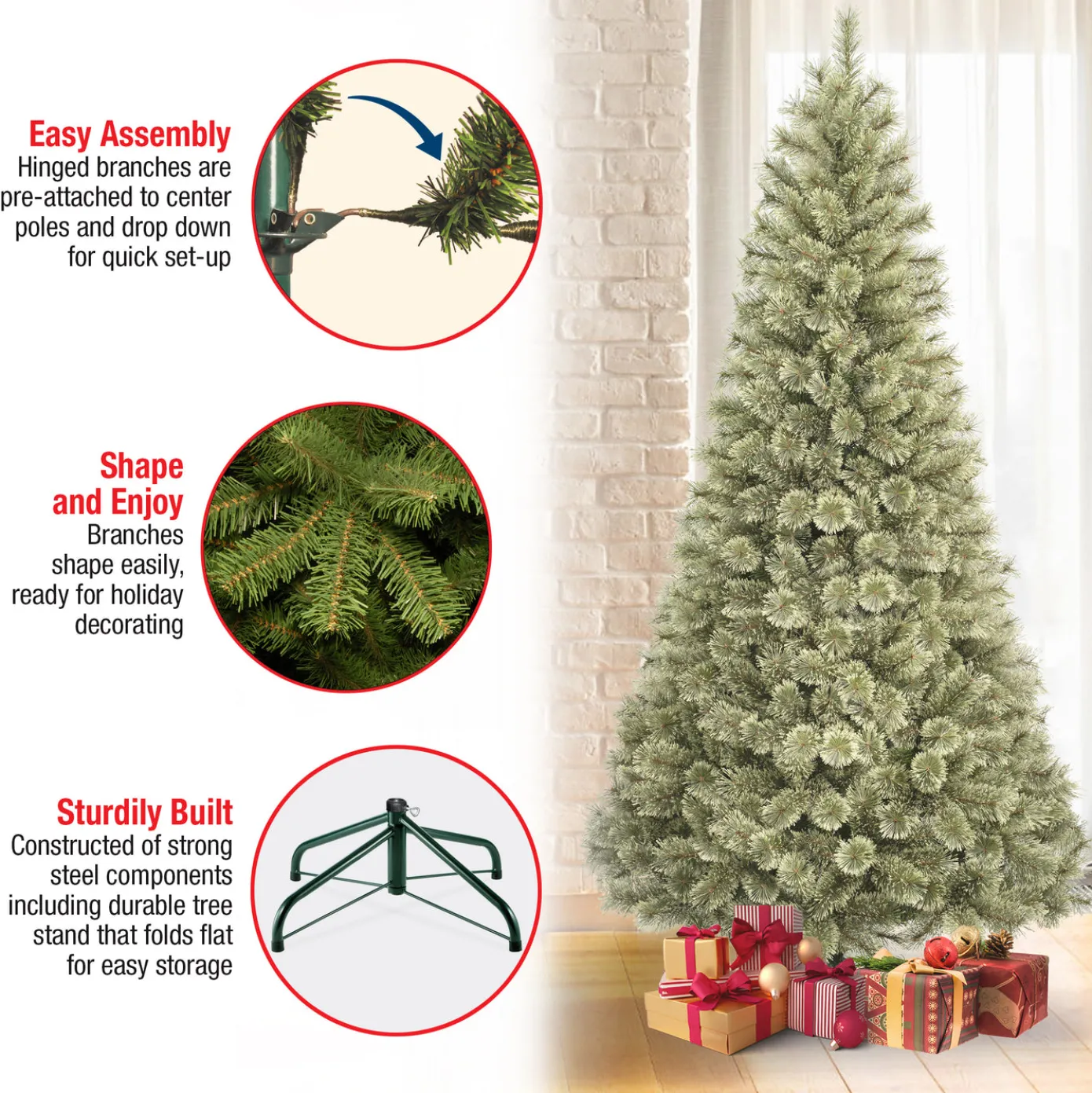 Create new Christmas memories with the Arcadia Pine Cashmere Christmas Tree. This charming tree is 7.5 feet tall and features hinged branches for easy assembly. This full body tree features a generous number of branch tips for holding holiday trimmings. Sturdy metal tree stand is included.