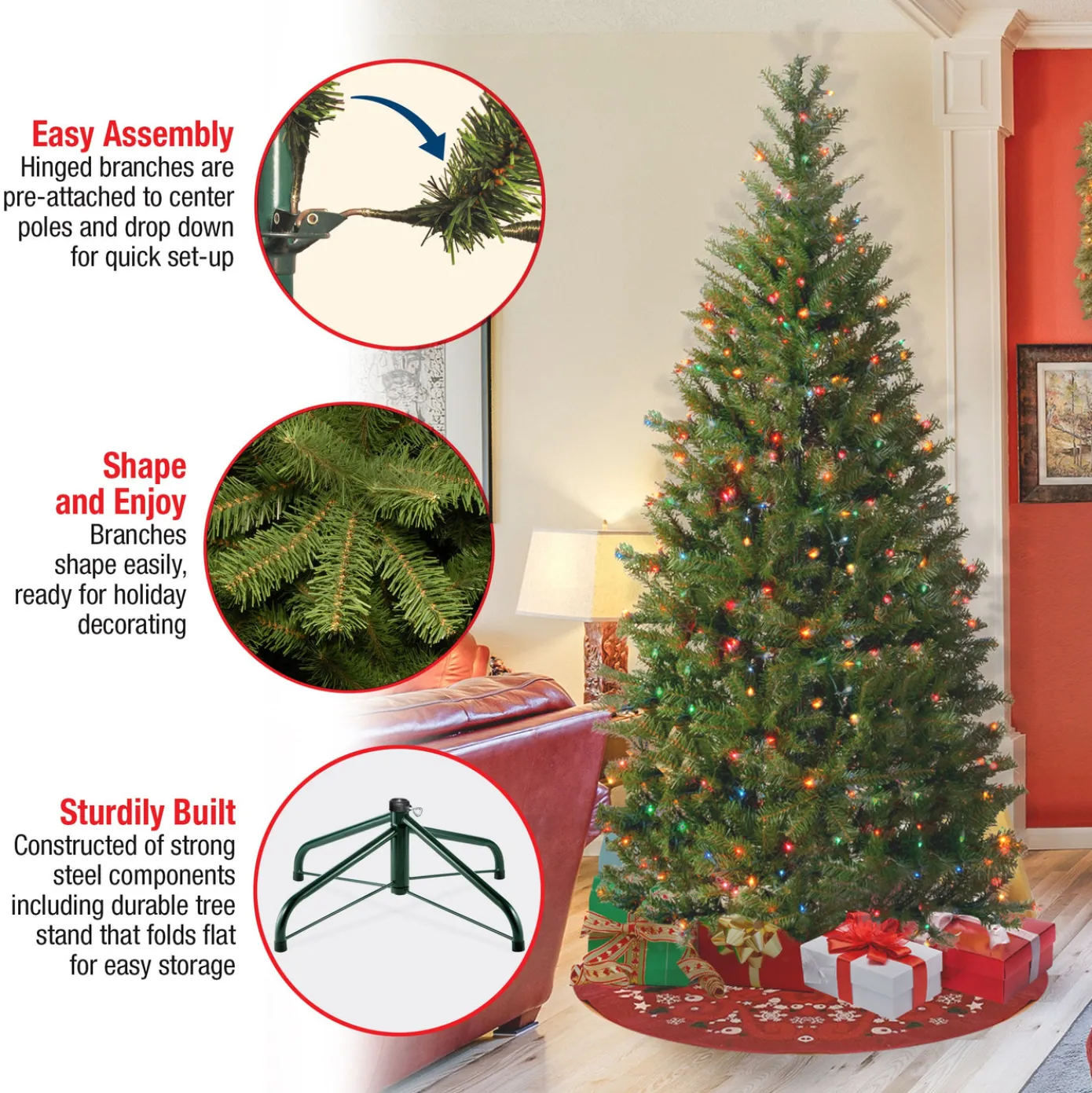 The Aspen Spruce is a full body tree featuring a generous number of branch tips for holding holiday trimmings. It is pre-strung with 450 multicolor lights that remain lit even if a bulb burns out. This tree features hinged branches for ease of assembly. Sturdy folding metal tree stand is included. The