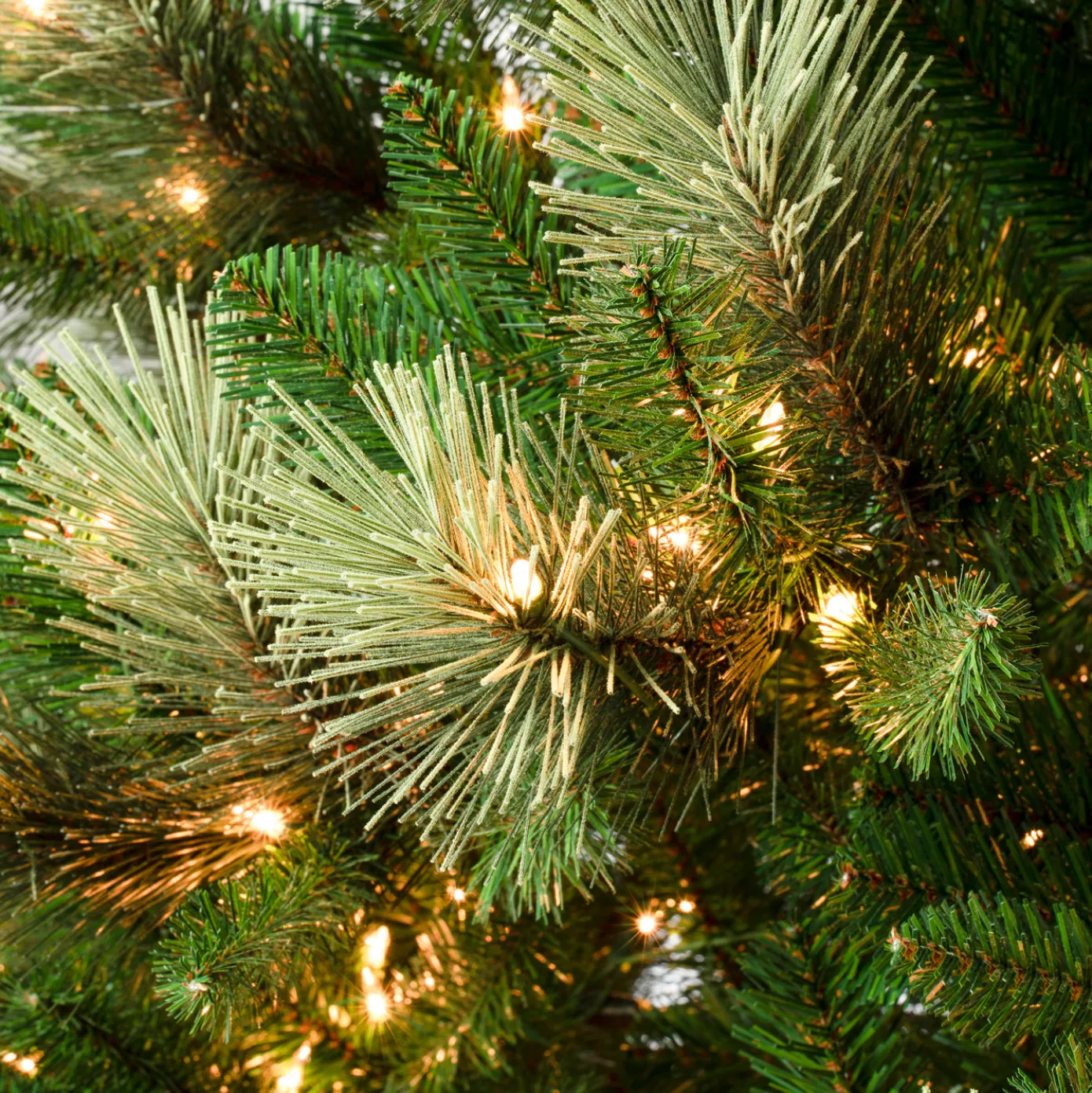The Charleston Pine tree offers a slim profile making it a great choice for display in corners or in areas where floor space is limited. This tree features a mixture of evergreen and bristle branch tips giving it a softer appearance. It is pre-lit with 300 clear lights that remain lit even if a bulb burns out. This tree is crafted with high quality materials and hinged branches for easy set up and includes a sturdy metal folding stand. For indoor display only.