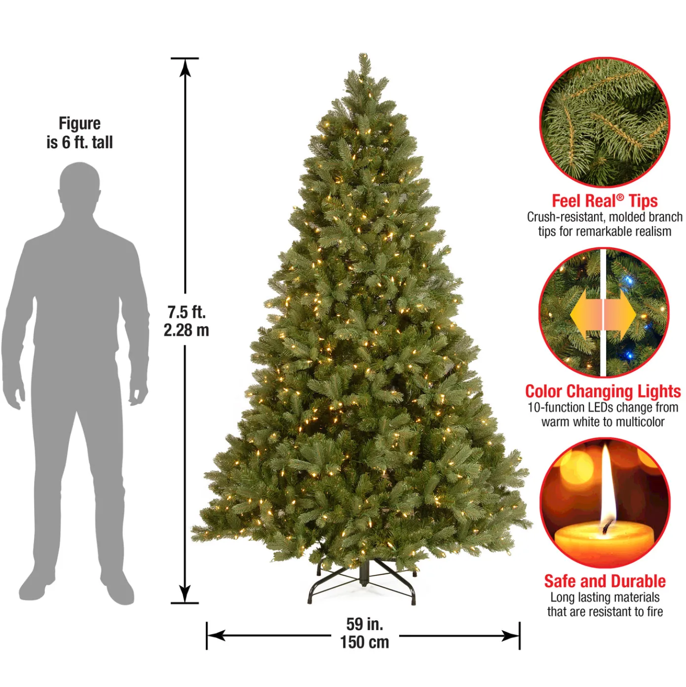 This Downswept DouglasFir tree features the PowerConnect through-the-pole lighting system that eliminates the need for connecting multiple light strings, reducing set up time. Also featured is Feel Real branch tip technology, creating a tree with remarkable realism. This tree is pre-strung with 750 Dual Colorlights that change from warm white to multicolor with the touch of a button. Included is a foot pedal switch to control 10 different light colors and actions. This tree features hinged branch construction for ease of assembly. Sturdy metal tree stand is included.