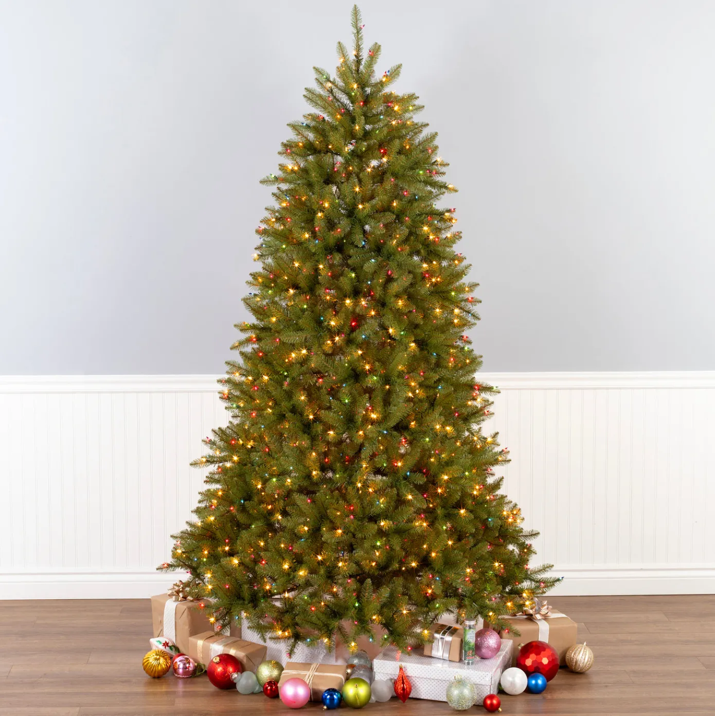Enjoy the beauty of a classic tree with the Dunhill Fir. This charming green tree is Pre-Lit with 1,200 multi and clear Spectrum lighting offering the sophistication of a classic tree with extraordinary holiday lighting. Crafted with high quality materials and hinged branches for easy set up and a metal folding stand.