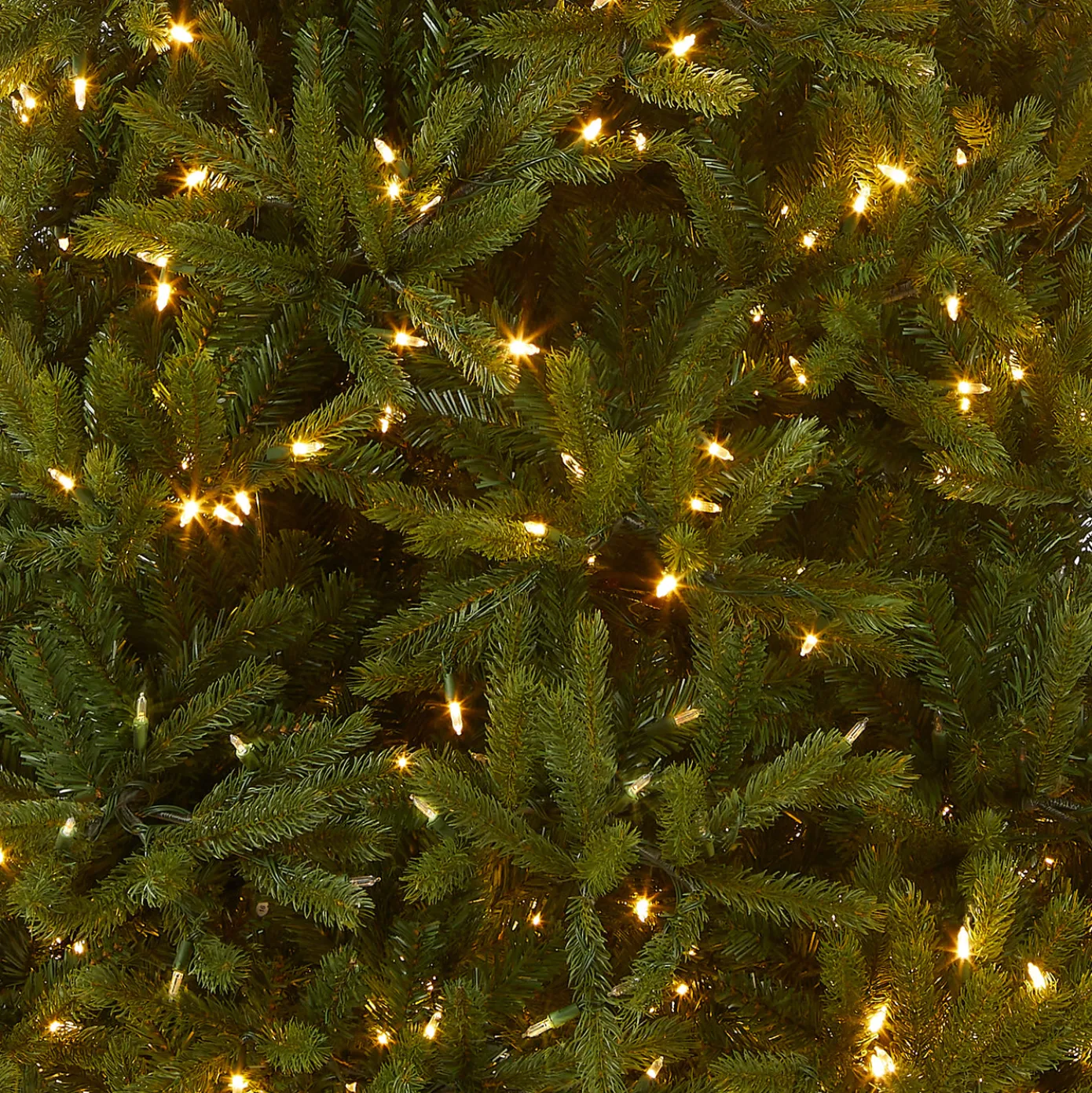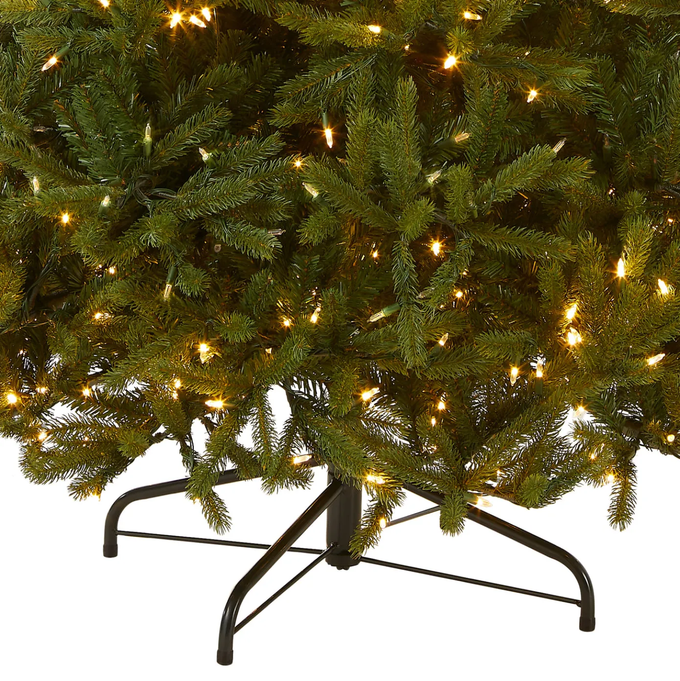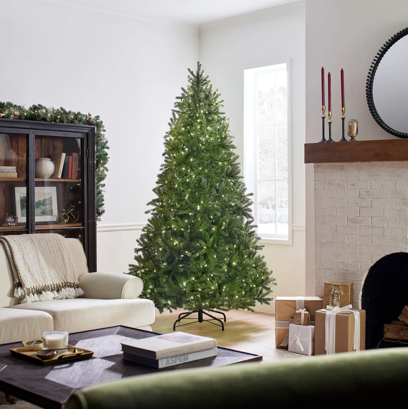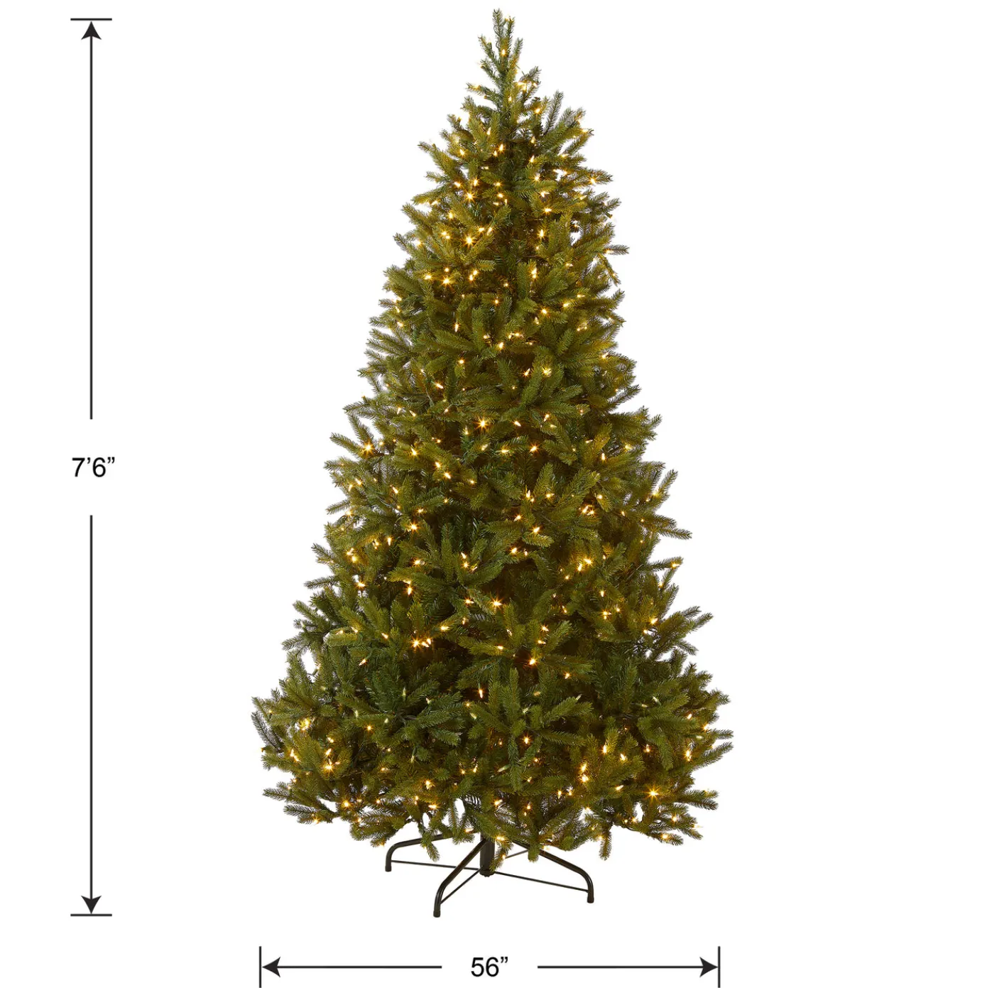 The Jersey Fraser Fir tree features Feel Real branch tip technology, creating a tree with remarkable realism. This tree is pre-strung with 1000 Dual Color lights that change from warm white to multicolor with the touch of a button. Included is a foot pedal switch to control 10 different light colors and actions. The medium width of this tree may be a better fit in areas where floor space is limited. This tree features hinged branch construction for ease of assembly. Sturdy metal tree stand is included.