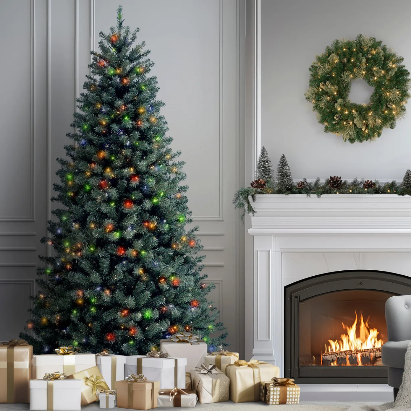 The North Valley Blue Spruce features branches with a blue hue rather than the green color of traditional trees. This spruce tree is pre-strung with 700 multicolor lights that remain lit even if a bulb burns out. This tree features hinged branch construction for ease of assembly. Sturdy metal tree stand is included.