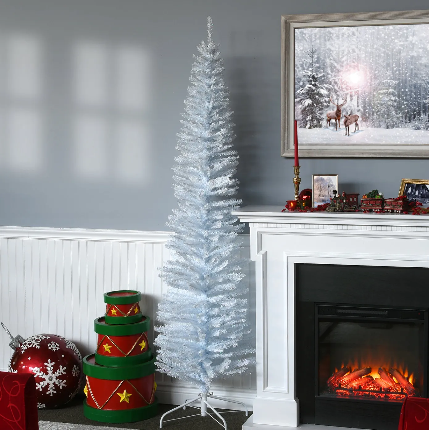 Slim Christmas trees are popular for their slender, space-saving design, making them ideal for smaller spaces or for adding a festive touch without taking up too much room.