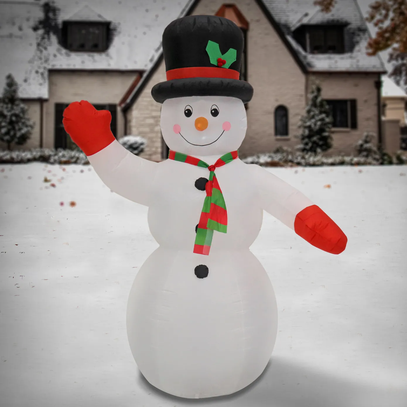 This 8 foot inflatable smiling snowman is such a cheerful holiday decoration! Its size and bright design will definitely be eye-catching. The three warm white LED lights will add a cozy touch, making it a perfect centerpiece for your outdoor display. Its height will surely make it a standout piece, adding a joyful and welcoming vibe to your yard or entryway. You can position it near your front door, alongside other festive decorations, or in the center of your yard to create a focal point. It self inflates in seconds and includes ground stakes and tethers for easy outdoor setup.