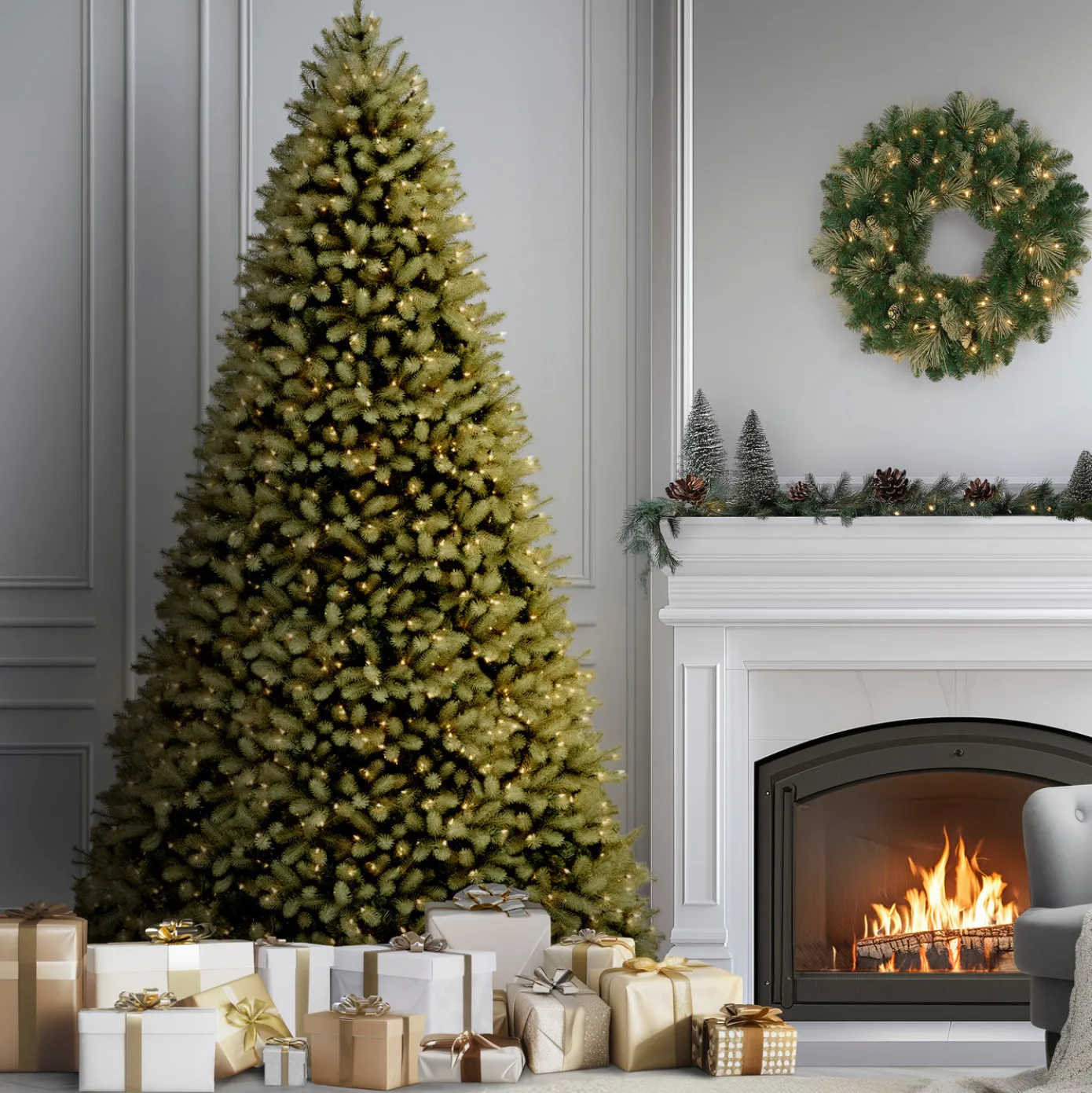 This Downswept DouglasFir tree features the PowerConnect through-the-pole lighting system that eliminates the need for connecting multiple light strings, reducing set up time. Also featured is Feel Real branch tip technology, creating a tree with remarkable realism. This tree is pre-strung with 900 Dual Colorlights that change from warm white to multicolor with the touch of a button. Included is a foot pedal switch to control 10 different light colors and actions. This tree features hinged branch construction for ease of assembly. Sturdy metal tree stand is included.