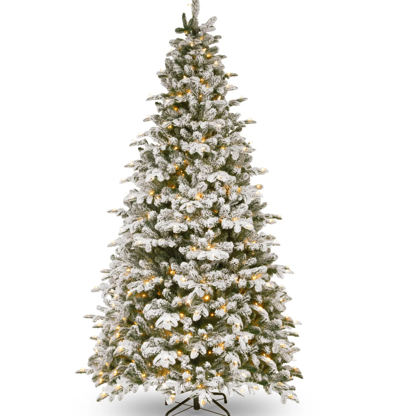 This Snowy Everest has flocked branches giving the appearance of freshly fallen snow. It features Feel Real branch tip technology, creating a tree with remarkable realism. These crush-resistant branch tips are molded from real tree branches for an authentic living tree appearance. This tree is pre-strung with 750 clear lights that remain lit even if a bulb burns out. The medium width of this tree may be a better fit in areas where floor space is limited. This tree features hinged branch construction for ease of assembly. Sturdy metal tree stand is included.