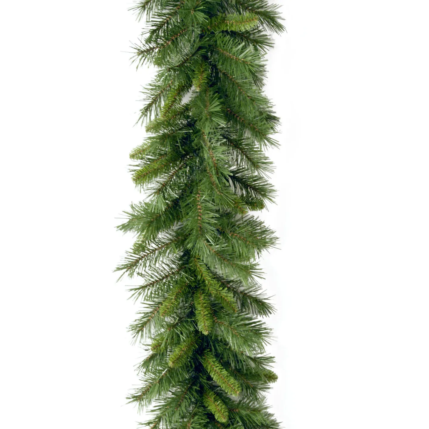 The branch tips on this Winchester Pine garland are a wider diameter creating a softer, fluffier look. It also presents the opportunity to decorate as desired by adding berries, holly, cones or other decor found at local craft stores. It is pre-strung with 350 clear lights that remain lit even if a bulb burns out. This indoor,outdoor garland can be displayed over doors, windows, fireplace mantels, fence, or stairway railings.
