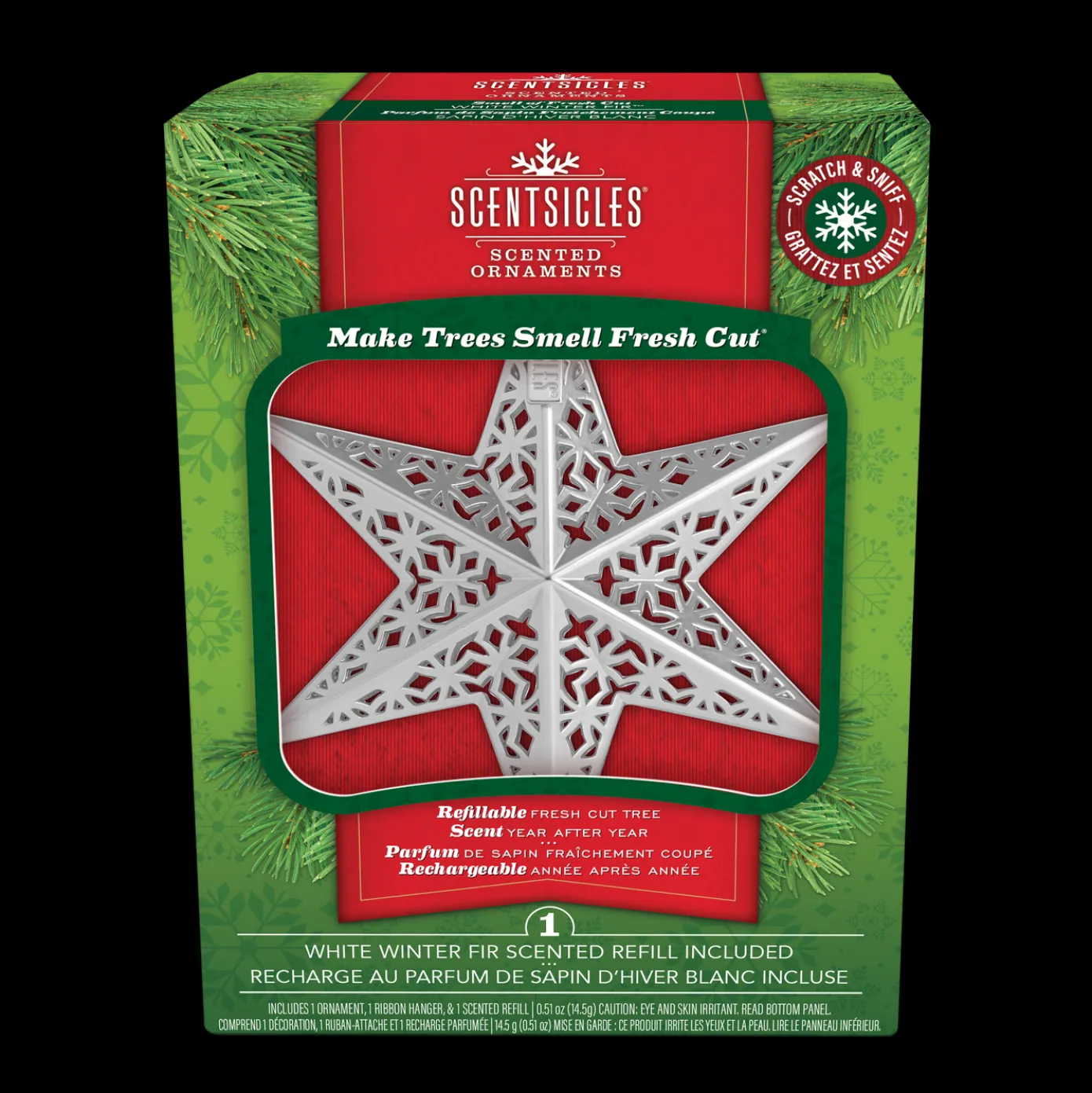 With a decorative touch, bring real scent of Christmas to your home. Place the scented star into the metal ornament and enjoy as your room fills with holiday scent.